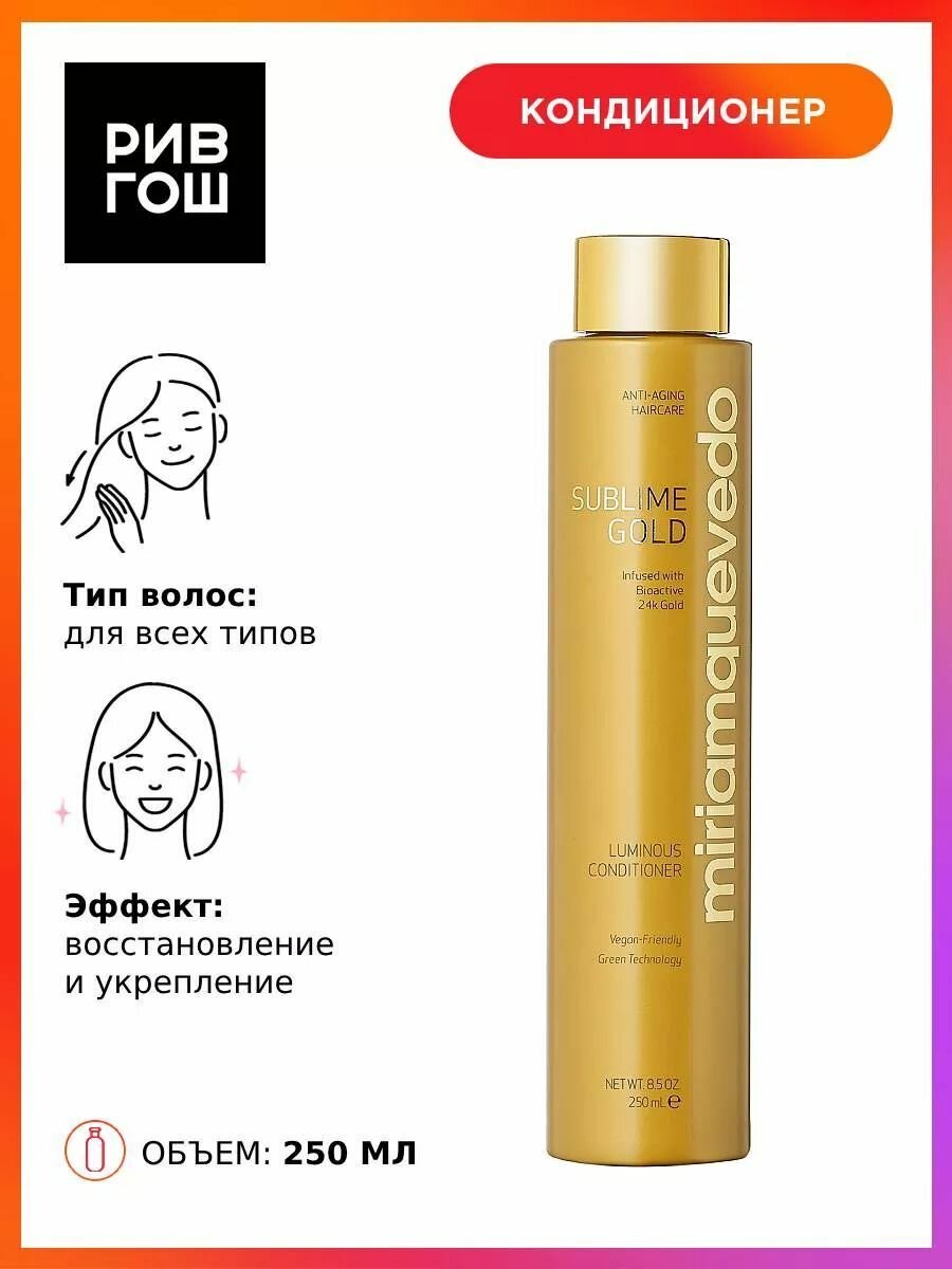 Новая линия Sublime Gold - настоящее сокровище в сфере ухода за волосами. Роскошный омолаживающий уход за сухими, тусклыми и поврежденными волосами с доказанной клинической эффективностью.Роскошный увлажняющий бальзам-кондиционер Miriamquevedo Sublime Gold питает волосы и способствует их регенерации.Формула включает в себя самые сложные технологии и ингредиенты, которые обеспечивают исключительные результаты. • Укрепляет волосы и кожу головы• Восстанавливает сухие, тусклые и поврежденные волосы• Придает блеск• Способствует гладкости волос• Препятствует спутыванию• Восстанавливает эластичность• Нормализует рН кожи головы• Идеально подходит для всех типов волос, особенно для сильно поврежденных и безжизненных• Защищает от внешних воздействий.Miriamquevedo сотрудничают с парфюмерной ассоциацией Грасса - столицы французской парфюмерии.Аромат: сочное прикосновение яблока и клубники, роскошь жасмина и ландыша, чувственные ноты сандалового дерева.Активные компоненты:• Биоактивное золото 24 карата (соединение 24-каратного микронизированного золота и 24-каратного коллоидного золота) - оптимизирует биораспределение активных ингредиентов, позволяя им глубже проникать в кожу головы, а также быстрее впитываться. Действует как защитный экран от старения, нейтрализуя свободные радикалы и укрепляя кожный барьер, защищая его от внешних агрессивных воздействий. Обеспечивает естественное сияние волос• Инкапсулированные стволовые клетки вечнозеленой средиземноморской дикой оливы - оказывают тройное действие, защищают кутикулу и кортекс волоса от УФА-излучения и теплового воздействия, сохраняют цвет волос• Органическое аргановое масло - благодаря высокому содержанию витамина Е и незаменимых жирных кислот обладает питательными, восстанавливающими, реструктурирующими и репаративными свойствами для кожи головы и волос• Веганский коллаген - получен из дикорастущего растения (N. Benthamiana). Способствует образованию коллагена. Улучшает эластичность и структуру волос. Способствует восстановлению волосяного волокна• Пептид моринги - защищает волосы от загрязнения, снижая действие выхлопных газов, УФ-лучей и частиц пыли. Повышает прочность и устойчивость волос, действует как фотопротектор, кондиционирует и восстанавливает волосы• Коктейль из пяти витаминов группы В (тиамин - В1, рибофлавин - В2, никотинамид - В3, пантенол - В5 и пиридоксин - В6) - защищает от окислительного стресса, повышает защитные и восстановительные свойства натурального кератина волос. Действует на уровне фолликула, регулирует выделение кожного сала и увеличивает выработку кератина, способствуя здоровому росту волос• Бетаин - аминокислота, необходима для поддержания естественного водного баланса. Обеспечивает комфорт, снимает раздражение и защищает кожу головы• Масло камелии - богато витаминами A, B, E, D и микроэлементами. Высокая антиоксидантная активность способствует восстановлению эластичности и гладкости волос• Протеиновый комплекс 5 Trace Elements (магний, железо, цинк, медь и кремний) -препятствуют превращению 5-альфа-редуктазы тестостерона в дигидротестостерон (ДГТ). ДГТ является основной причиной выпадения волос. Обеспечивает клетки необходимыми питательными веществами для активного деления клеток и оптимального роста волос.Шампунь обладает фруктово-цветочным 