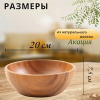 Миска из дерева - кухонная посуда, которая станет незаменимым аксессуаром на кухне и столовой. Чаша 20х7,5 см для сервировки салатов, закусок, фруктов и овощей на природе. Она впишется в любой интерьер дома или дачи.