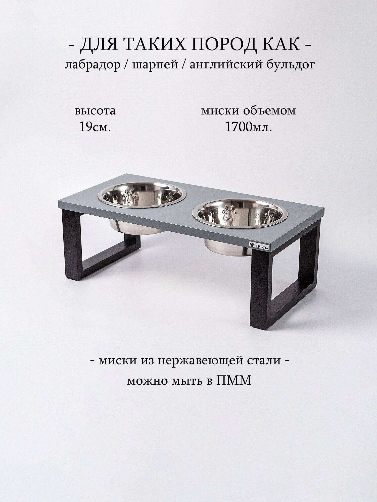 Миска для собак на подставке двойная "БИГ" Pepilota по высоте и объему мисок идеально подойдёт для пород: