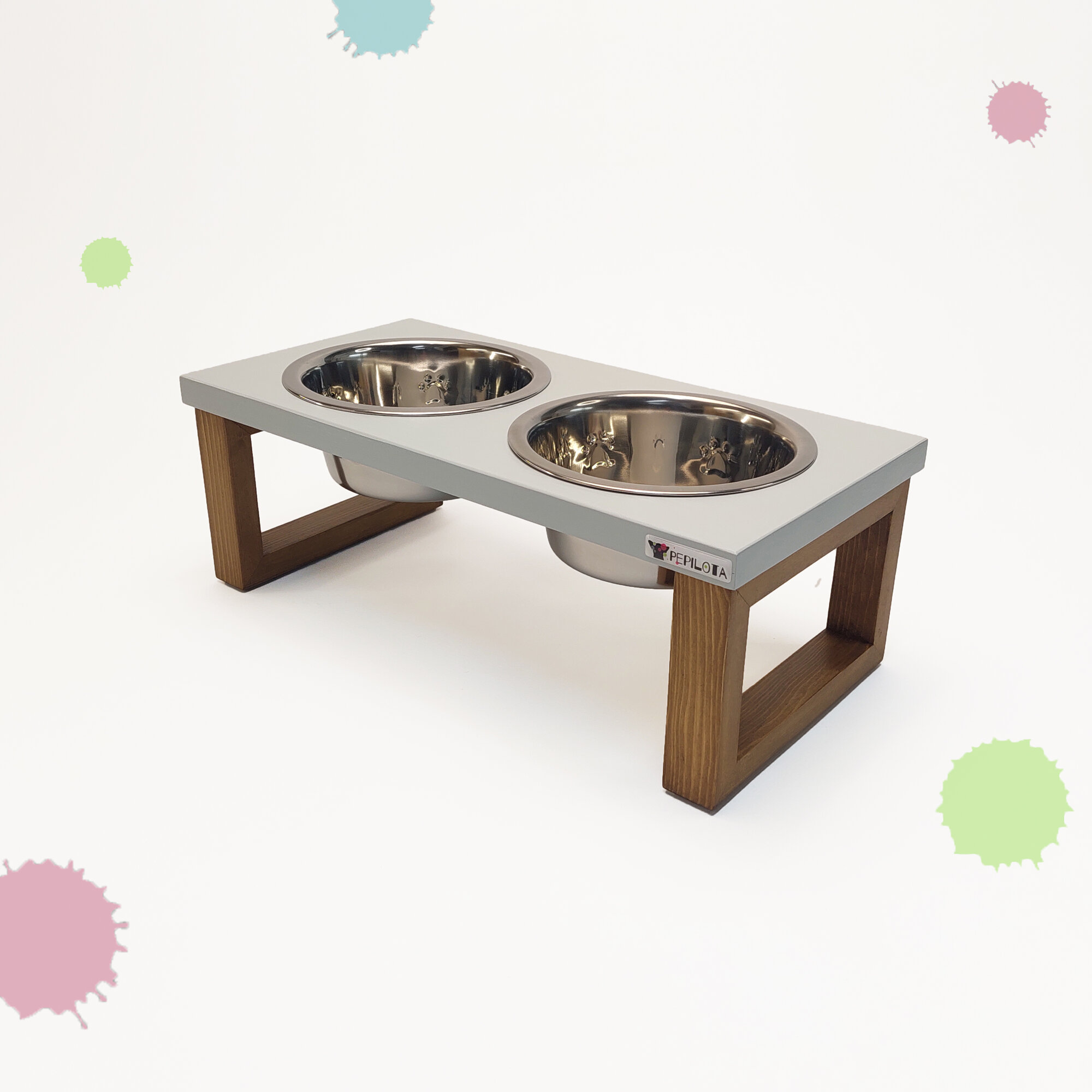 Купить Миска для собак на подставке Двойная по 800мл., Pepilota «Корги», высота 14см., Серый с доставкой по всей России.