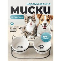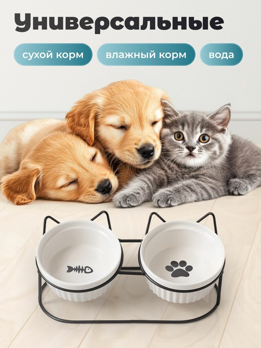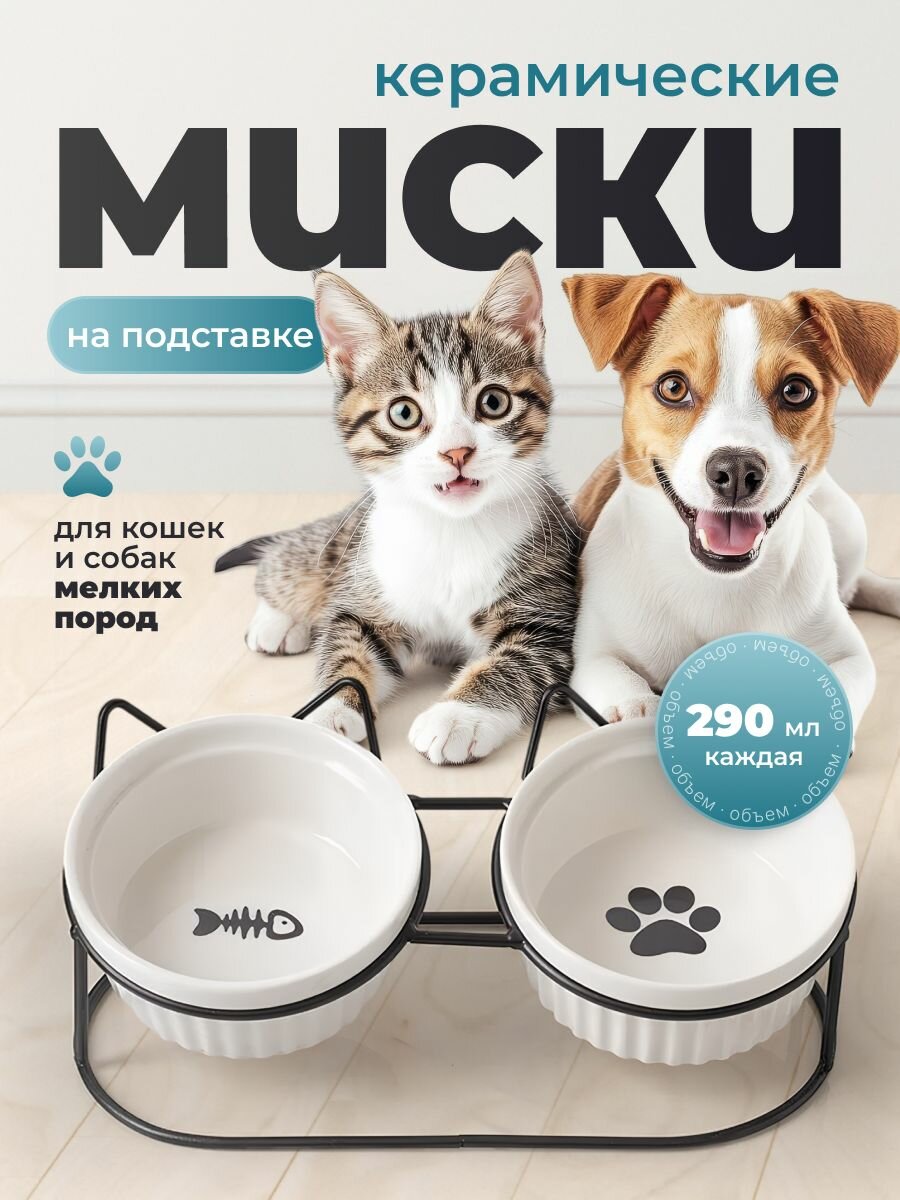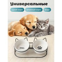 Двойная кошачья мисочка позволяет одновременно подать корм и воду, экономя место и создавая аккуратный уголок для питания. Набор сделан из керамики, отличается экологичностью, устойчивостью и простотой в уходе. Это практичное решение для нескольких питомцев или разных видов корма. Миски для кота обеспечивают правильную осанку животного и уменьшают нагрузку на шею и суставы. Сохраняют свежесть еды и не впитывают запахи, что особенно важно для привередливых питомцев. Их легко снять с подставки и помыть. Кошачья и собачья миска подходит для удобного размещения еды и воды в одном месте. Может стать отличным выбором для мелких пород благодаря своей функциональности и стилю. Позаботьтесь о своем питомце, обеспечив ему комфортный и правильный прием пищи!