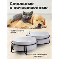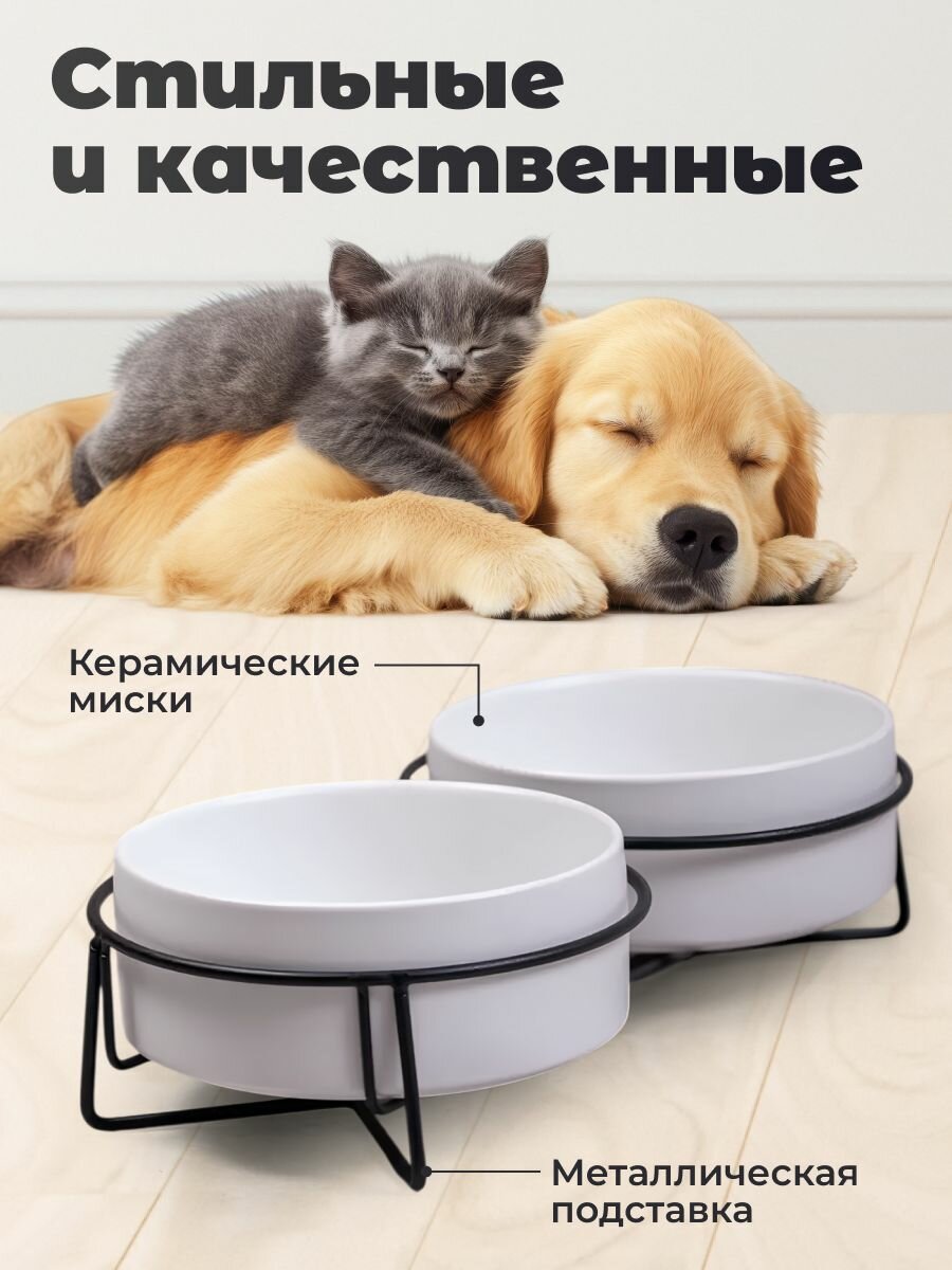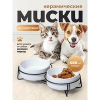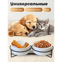 Двойная кошачья мисочка позволяет одновременно подать корм и воду, экономя место и создавая аккуратный уголок для питания. Набор сделан из керамики, отличается экологичностью, устойчивостью и простотой в уходе. Это практичное решение для нескольких питомцев или разных видов корма. Миски для кота обеспечивают правильную осанку животного и уменьшают нагрузку на шею и суставы. Сохраняют свежесть еды и не впитывают запахи, что особенно важно для привередливых питомцев. Их легко снять с подставки и помыть. Кошачья и собачья миска подходит для удобного размещения еды и воды в одном месте. Может стать отличным выбором для мелких пород благодаря своей функциональности и стилю. Позаботьтесь о своем питомце, обеспечив ему комфортный и правильный прием пищи!
