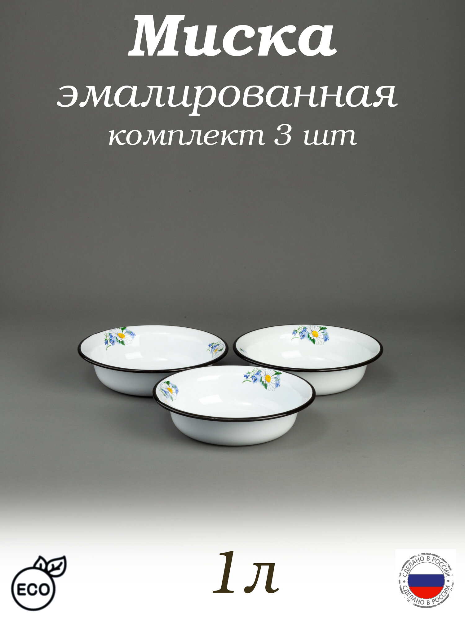Купить Миска эмалированная 1 л белая с рисунком Ромашковое поле, комплект 3 шт с доставкой по всей России. Миска эмалированная 1 л белая с рисунком Ромашковое поле, комплект 3 шт: сравнение цен, характеристики, фото, актуальное наличие и цены.