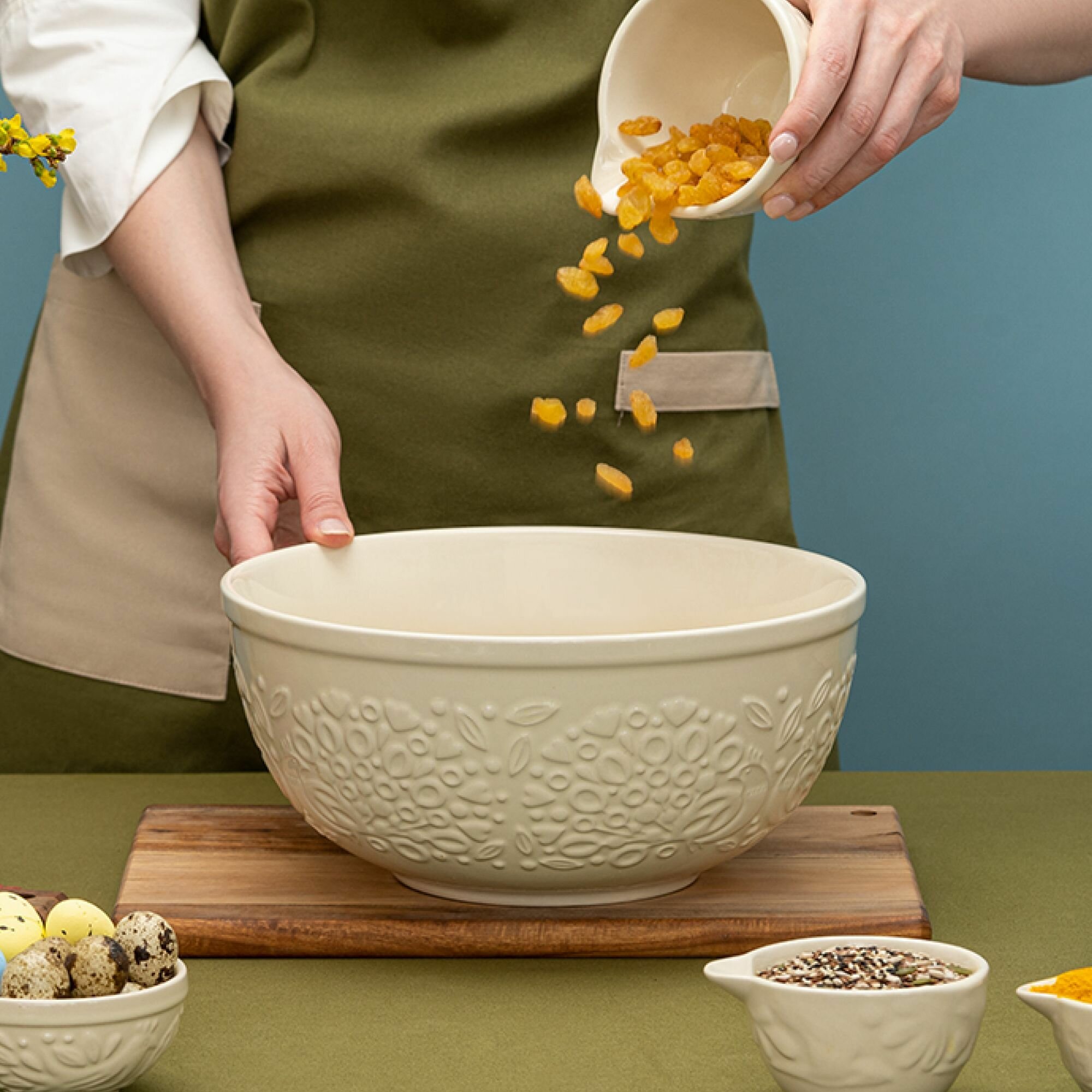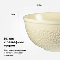 Миска керамическая для смешивания – качественная посуда из экологичной каменной керамики, которая облегчает процесс готовки и делает интерьер любой кухни более уютным. Отличительной особенностью серии является объемный узор природной тематики, добавляющий дизайну элегантные нотки. Благодаря высокой прочности и устойчивости материала к износу изделие не теряет привлекательный внешний вид на протяжении всего срока службы. Покрытие глазурью упрощает уход, обеспечивает декоративность и дополнительную защиту от внешних воздействий. Керамическая миска идеально подходит для смешивания ингредиентов во время приготовления различных блюд.