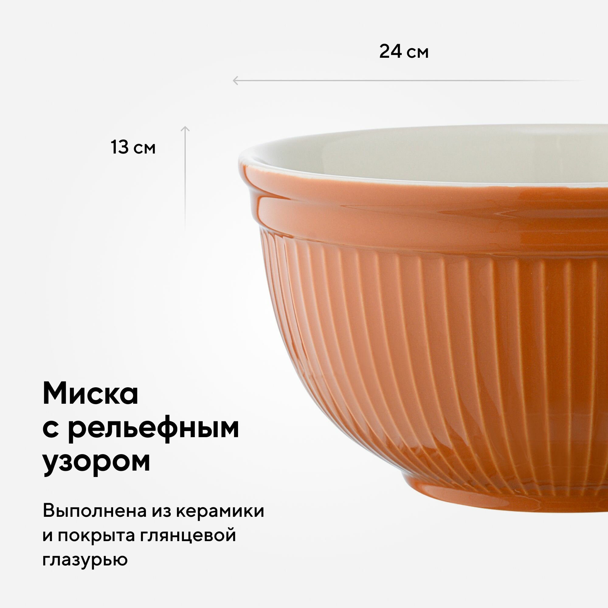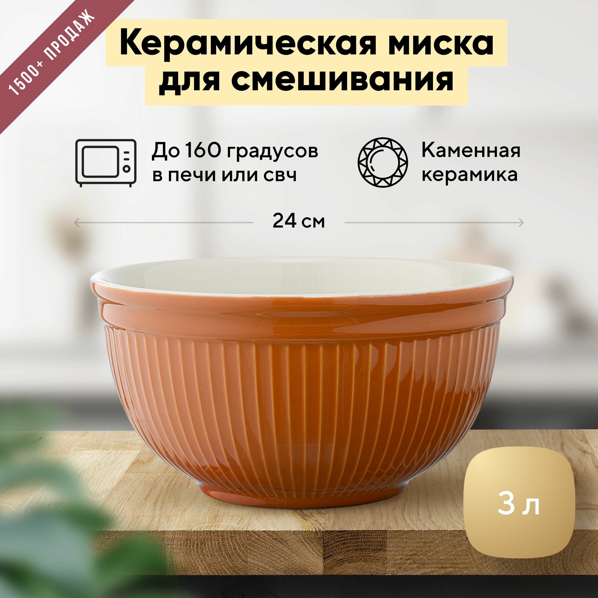 Миска керамическая для смешивания пригодится при замешивании теста, смешивании ингредиентов, подойдет для складывания продуктов во время готовки или подачи к столу фруктов. Миска из прочной, устойчивой к износу каменной керамики сохраняет привлекательный вид на протяжении всего срока эксплуатации.