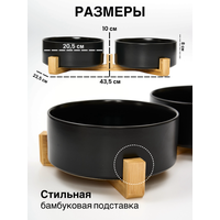 Купить Миска керамическая для собак средней породы черная1,8л*2шт на бамбуковой подставке с доставкой по всей России.
