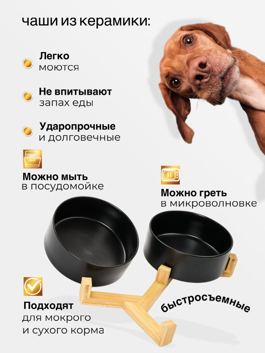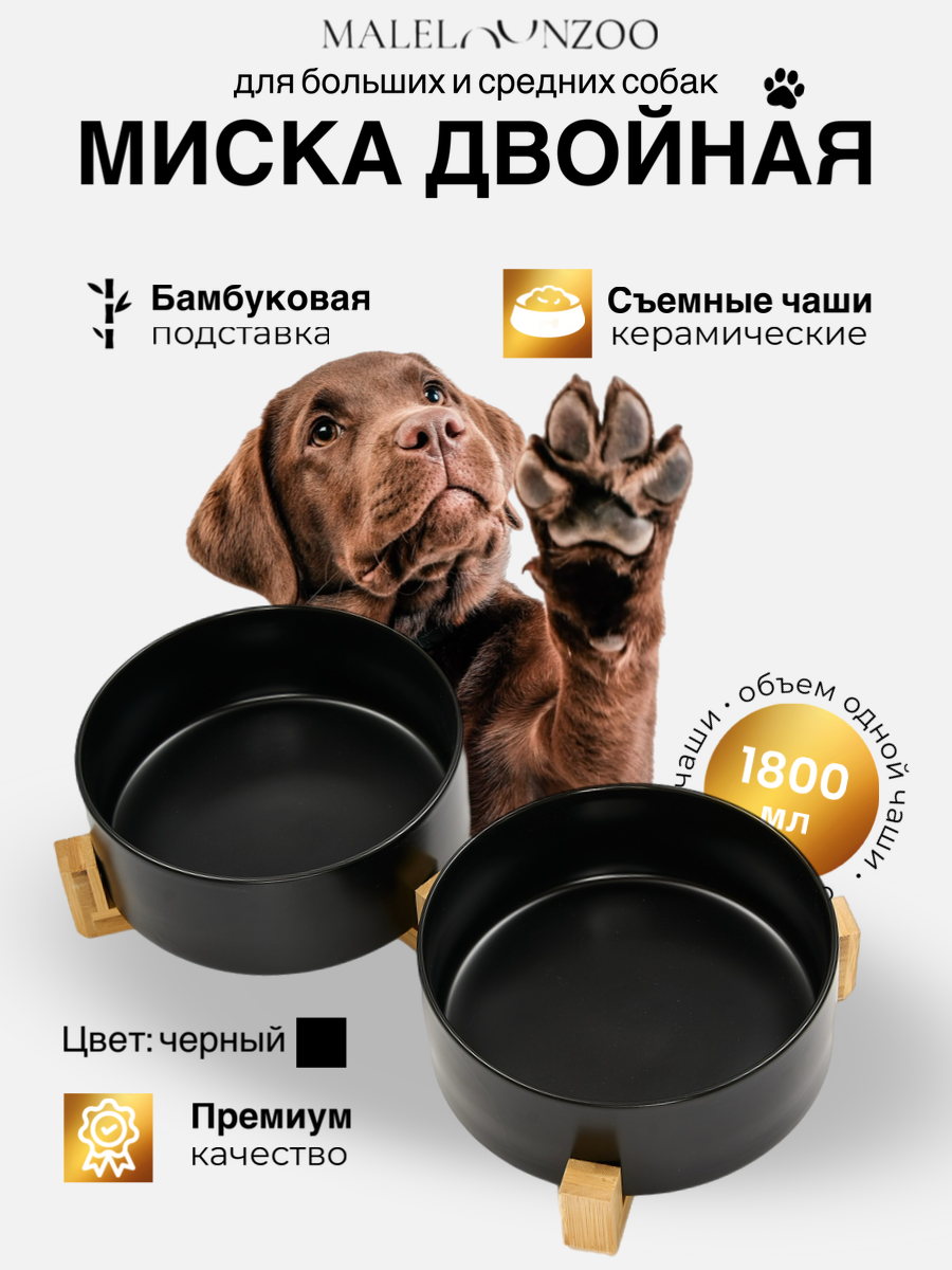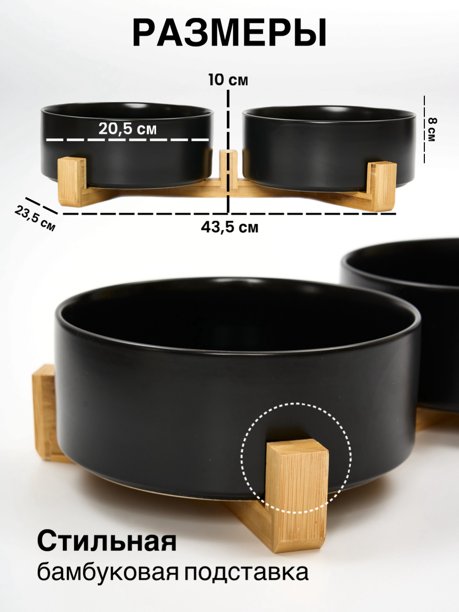 Миска керамическая для собак средней породы черная1,8л*2шт на бамбуковой подставке: сравнение цен, характеристики, фото, актуальное наличие и цены.