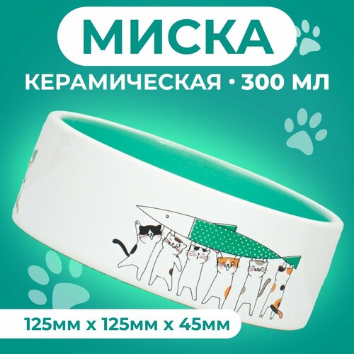 Миска керамическая "Котяры" 300 мл 12,5 x 4,5 cм, бело-зеленая