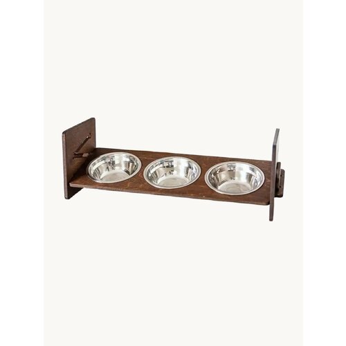Тройная складная миска для собак и кошек с регулируемой по высоте подставкой. Кошачья - три чаши в комплекте: для сухого корма, влажного и воды. Чаши выполнены из нержавеющей стали. Деревянная подставка - качественный материал - дерево (фанера березы), нет постороннего запаха. Металлическая подойдет для собак мелких и средних пород и больших (Мейн-кун, Саванна, бобтейл). Миски выполнены с наклоном, который обеспечивает правильное положение шейного позвонка питомца при приеме воды и пищи. В продаже и другие товары собственного производства в России, зоотовары для котов, грызунов и других животных: миска двойная и тройная на подставке (складная), керамическая, пластиковая, кормушка для мелких, больших и средних пород. Ваш кот и собака будут вам благодарны! Чаши легко вынимать и мыть. Полезный объем каждой (материал нержавеющая сталь). Железная эмалированная - отличное решение для кормления Ваших питомцев. Глубокая форма позволяет использовать ее для медленного кормления, что помогает снизить риск пищевых расстройств у животных. Кроме того, мы предлагаем складную, которая занимает минимум места и станет идеальным решением для поездок и отдыха с животными. Наш ассортимент также включает для котят и кошек. Остановите свой выбор на нашей эмалированной железной миске и обеспечьте своим любимцам комфорт и заботу! Миска для котенка - лучший выбор для кормления Вашего пушистого друга. Нержавеющая прослужит долгое время, не подвергаясь коррозии, и сохранит свой первоначальный вид и свойства. Миска нержавейка - это не только эстетичный, но и экологичный выбор. Такая миска не впитывает запахи и не содержит вредных веществ, что делает ее безопасной для животных. Выберите нашу миску нержавеющую для кормления своих животных и обеспечьте им безопасность и комфорт!