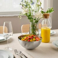 Глубокая железная миска IKEA Бланда Бланк из нержавеющей стали — это многофункциональный и практичный кухонный аксессуар. Миска изготовлена из высококачественной нержавеющей стали, что делает её долговечной и устойчивой к повреждениям. Она проста и естественна по дизайну, но при этом многофункциональна. Миска идеально подходит для перемешивания ингредиентов, использования на кухне дома и на природе на даче. Её легко мыть, в том числе в посудомоечной машине.
