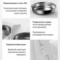 Надежная фиксация миски к кормушке обеспечивает устойчивость и предотвращает скольжение, что особенно важно при кормлении активных питомцев.