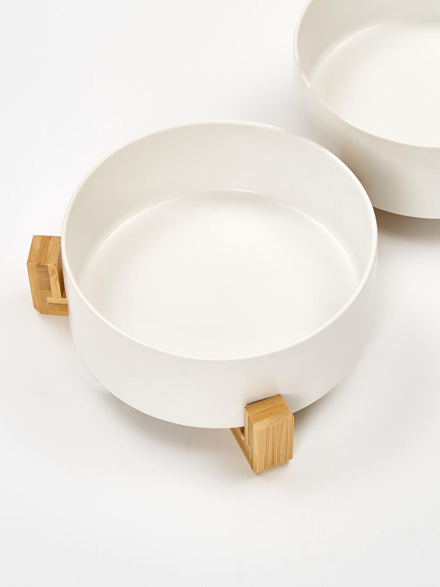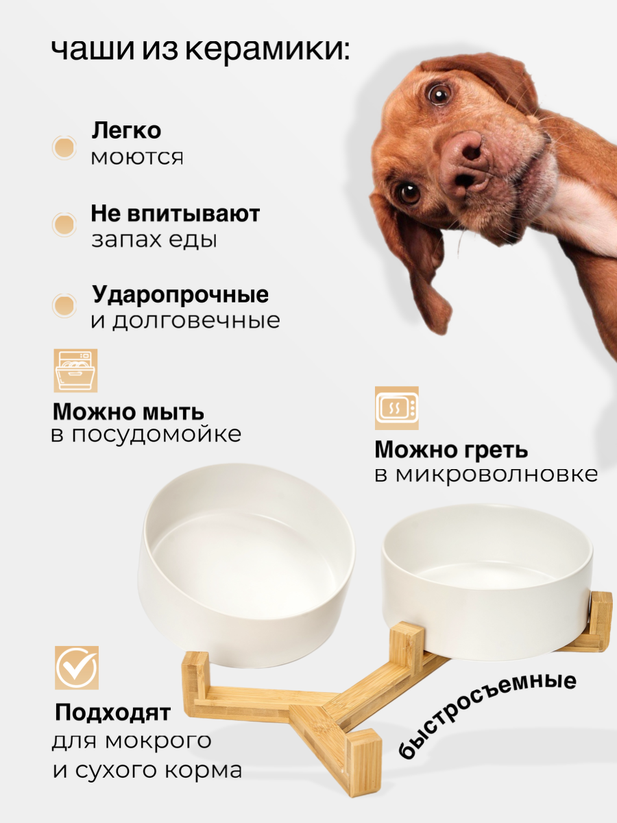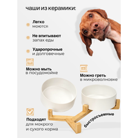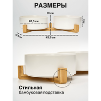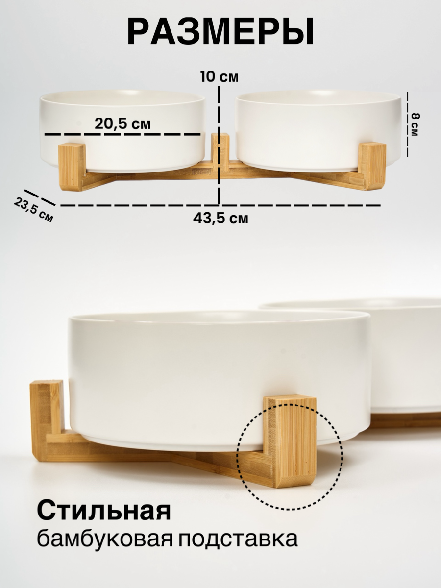 Бамбуковая подставка, на которой установлены миски, устойчива и влагостойка. Благодаря своему весу, она не скользит по полу, обеспечивая стабильность и безопасность использования.