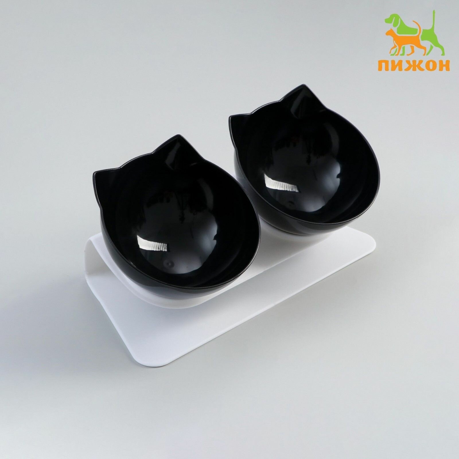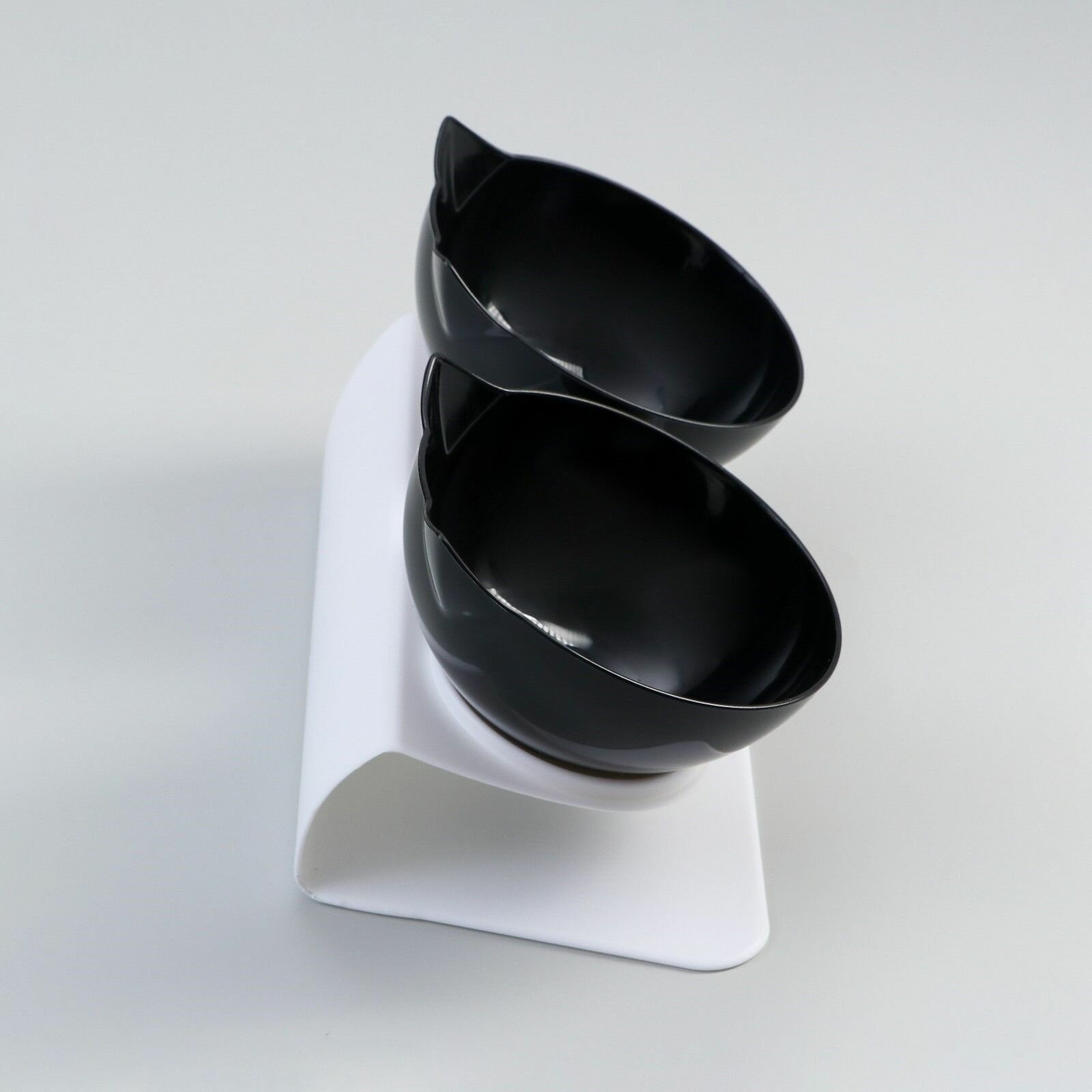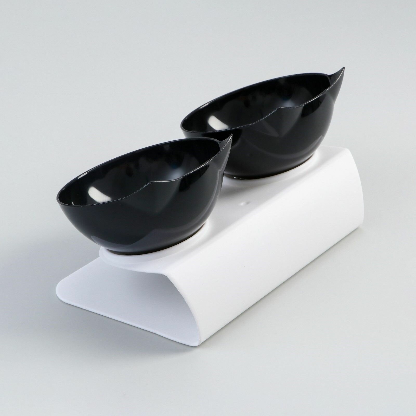 Миски пластиковые на белой подставке 27,5 х 14 х 15 см черная/белая