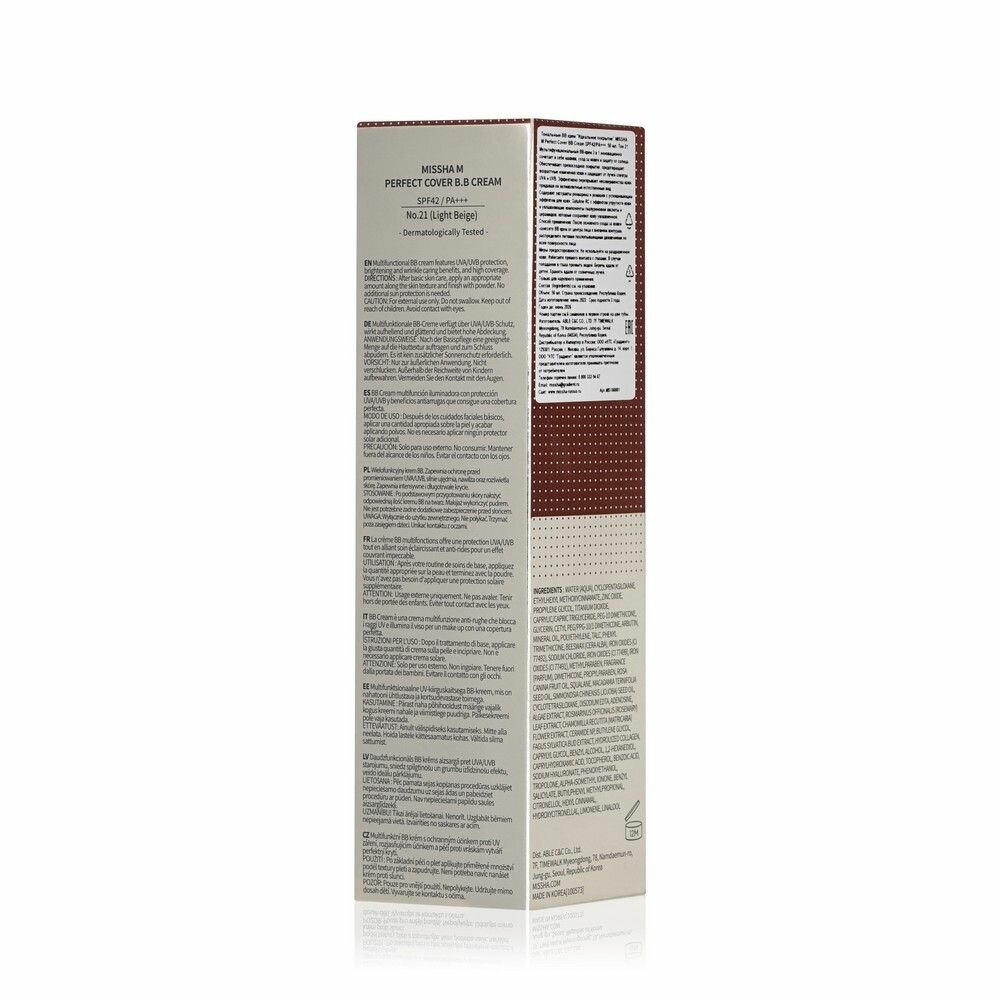 Не меняет оттенок в течение дня, не сереет, не темнеет, не скатывается. Благодаря мягкой кремовой текстуре BB крема для лица MISSHA М Perfect Cover легко и быстро наносится, равномерно растушевывается. Идеально перекрывает темные круги под глазами, маскирует покраснения и заметно осветляет пигментные пятна.