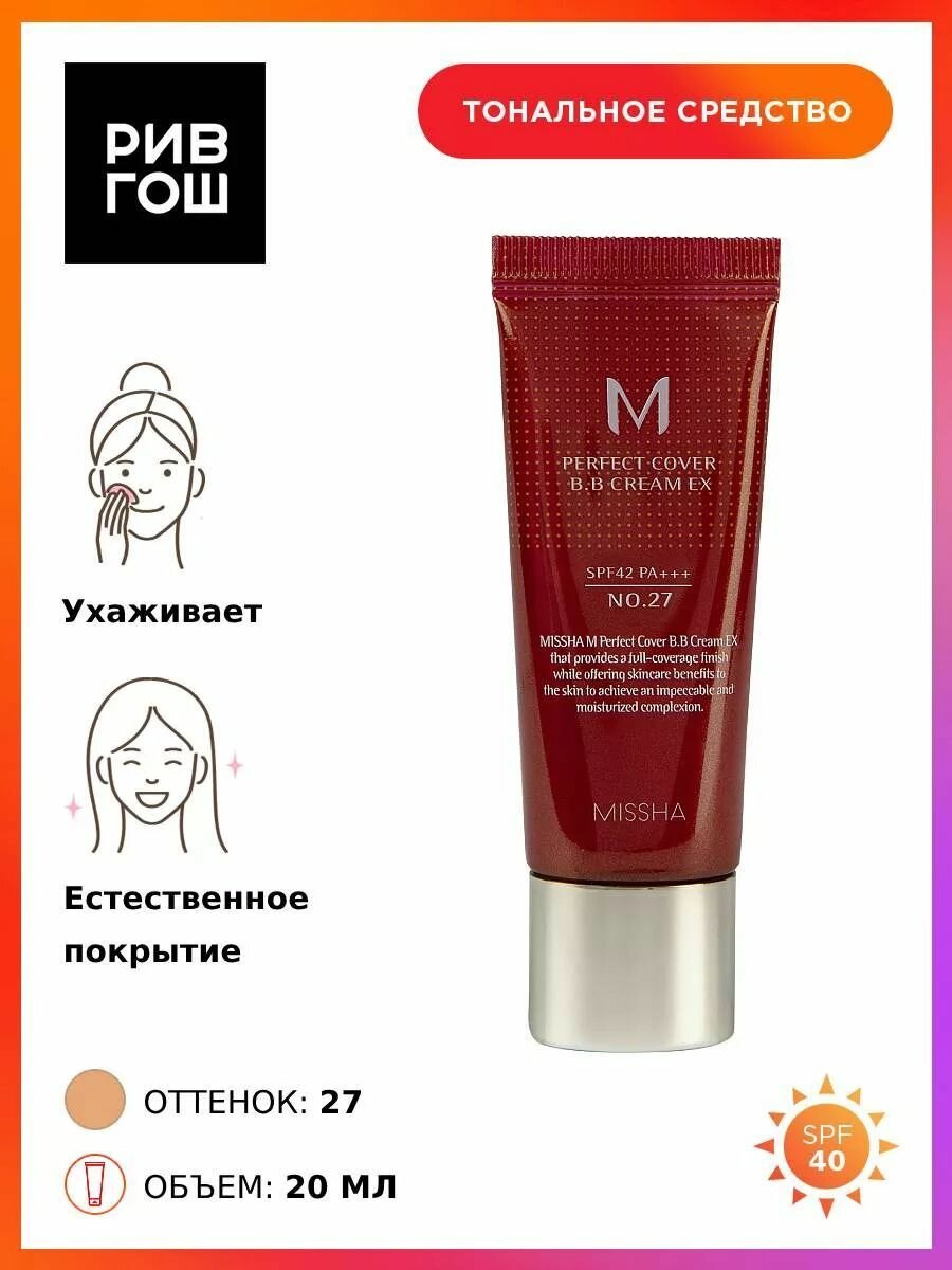 Купить MISSHA M Perfect Cover BB Cream Тональный крем EX SPF 42/PA+++, 20 мл, 27 Honey beige с доставкой по всей России.