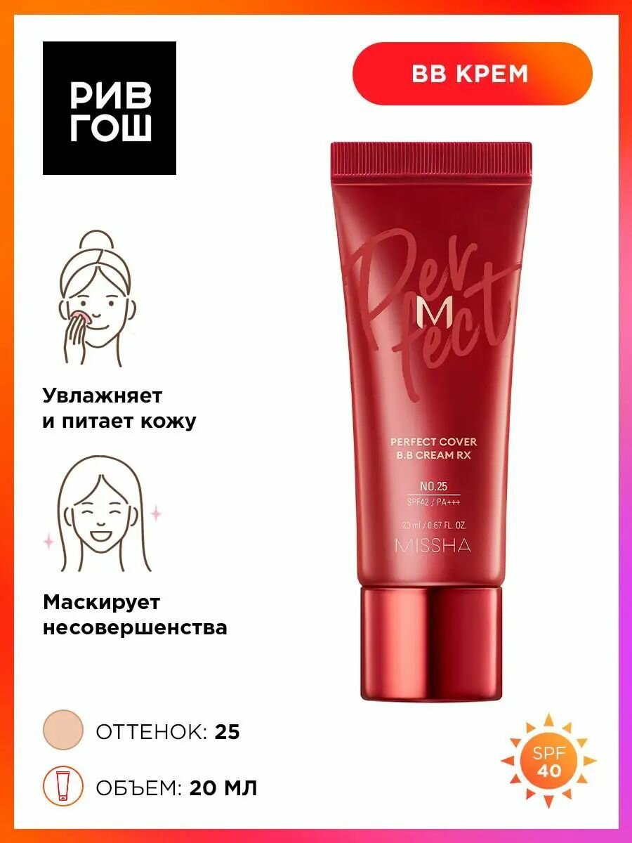 Купить MISSHA M Perfect Cover BB Cream Rx Тональный BB крем для лица SPF42/PA, 20 мл, 25 Warm beige с доставкой по всей России.