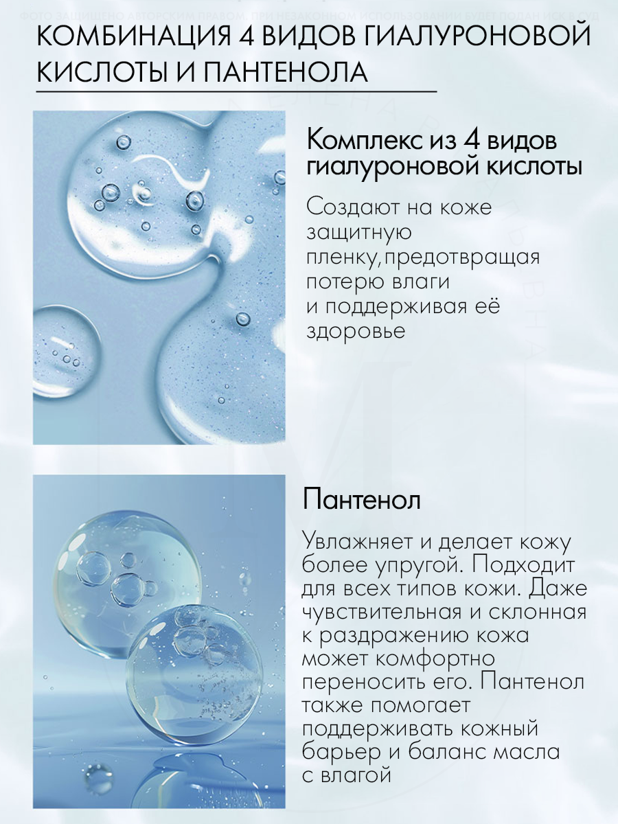 | Активный ингредиент | аденозин, аллантоин, бетаин, витамин B3 (ниацинамид), гиалуроновая кислота, глицерин, глутатион, пантенол (провитамин B5), пептиды, пробиотики, центелла азиатская, церамиды, цинк |
