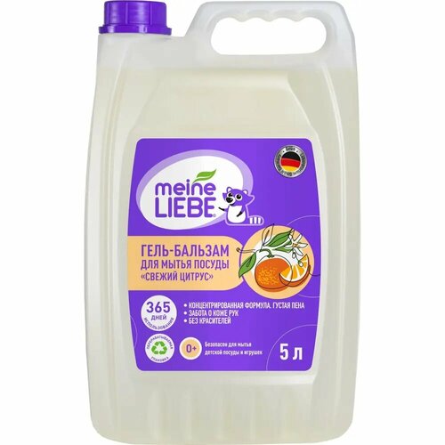 Гель-бальзам для мытья посуды от бренда Meine Liebe с ароматом свежего цитруса — это концентрированное средство, которое превосходно справляется с различными задачами на кухне. Объем упаковки составляет 5 литров.