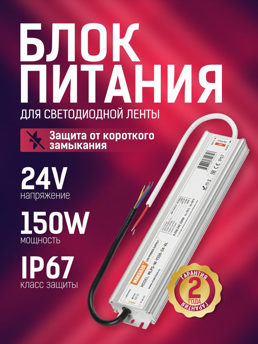 Купить MLPS-W-Y150-24-AL, Блок питания, 24В,6.25А,150Вт, IP67, влагостойкий MAKSILED с доставкой по всей России.
