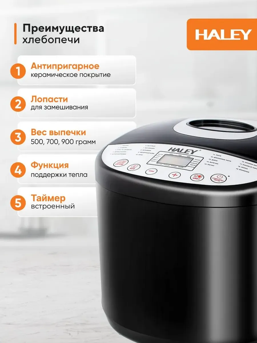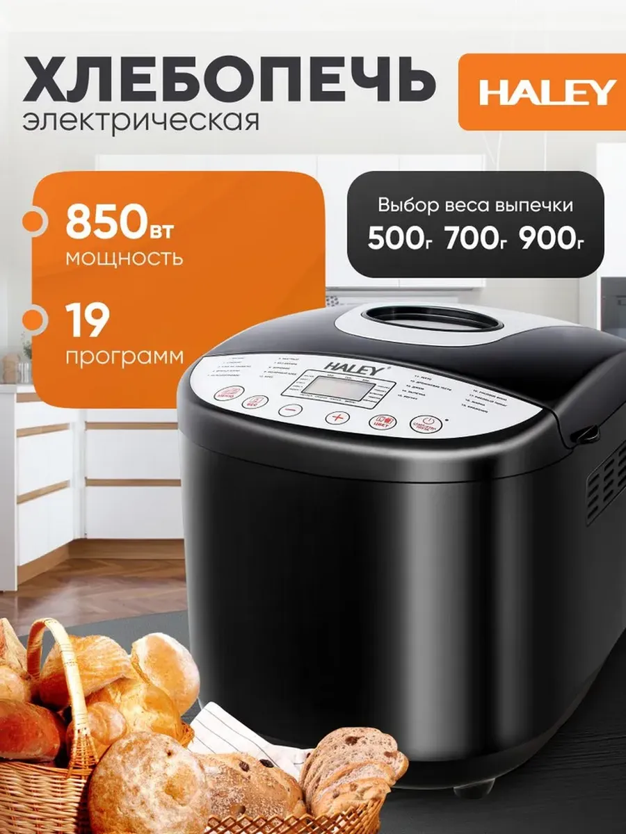 Многофункциональная хлебопечка Haley, 850 Вт, 19 программных настроек: сравнение цен, характеристики, фото, актуальное наличие и цены.