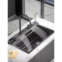 Мы предлагаем вам многофункциональную кухонную стальную раковину - идеальное решение для кухонного пространства. Умная раковина изготовлена из нержавеющей стали, которая отличается прочностью и устойчивостью к повреждениям и коррозии. Антибактериальное нанопокрытие и врезная конструкция обеспечивают легкую очистку. Он легко моется и не впитывает запахи, что делает его очень подходящим для использования на кухне. Раковина имеет стильный и изящный дизайн, который позволяет расширить пространство и сделать его более изысканным и сдержанным. Раковина оснащена функцией водопада, и есть два разных потока воды - большой и малый, которые можно переключать с помощью кнопок. Устройство контроля температуры раковины со встроенным экраном и смесителем с постоянной температурой обеспечивает комфортную эксплуатацию раковины. Удобный смеситель выдвигается на 60 см и вращается на 360 градусов, что значительно облегчает процесс стирки. Выдвижная конструкция с двумя направляющими позволяет модифицировать встроенную раковину в соответствии с вашими потребностями, такими как ополаскивание и замачивание посуды, мойка и нарезка овощей и фруктов и т. д. В комплект поставки входят дуршлаг (съемная чаша), разделочная доска и дренажные принадлежности. Кроме того, наши уникальные кухонные принадлежности оснащены встроенным краном, фильтром для питьевой воды, устройством для промывки стекла и дозатором мыла.