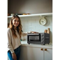 Представляем вам многофункциональную мини-печь объемом 25 литров, которая станет незаменимым помощником на вашей кухне. Эта компактная модель идеально подходит для небольших кухонных пространств, обеспечивая при этом отличное качество готовки. Благодаря встроенному таймеру с функцией автоотключения, вы можете без опаски оставлять блюда на приготовление, не переживая о перегреве.