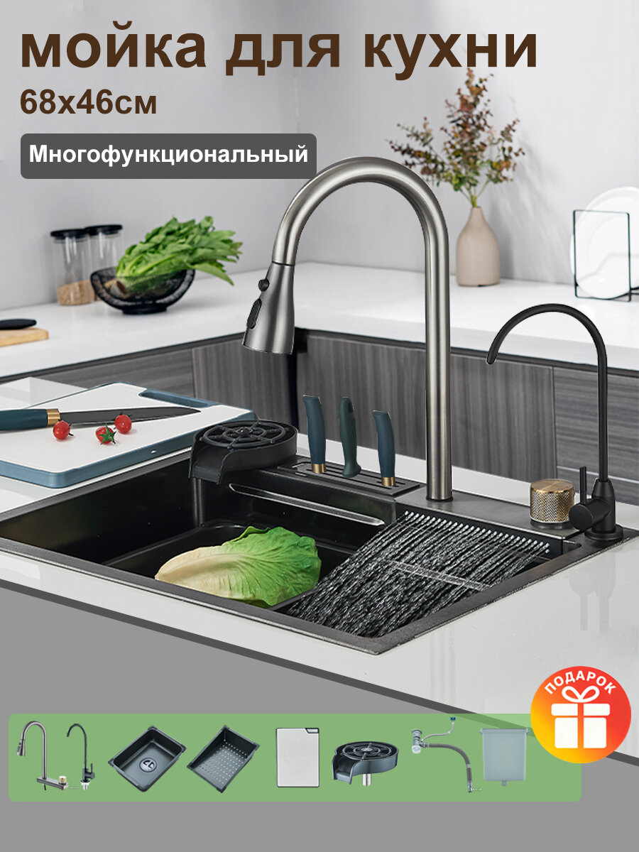 Купить Многофункциональная мойка для кухни 680*460MM с доставкой по всей России. Многофункциональная мойка для кухни 680*460MM: сравнение цен, характеристики, фото, актуальное наличие и цены.