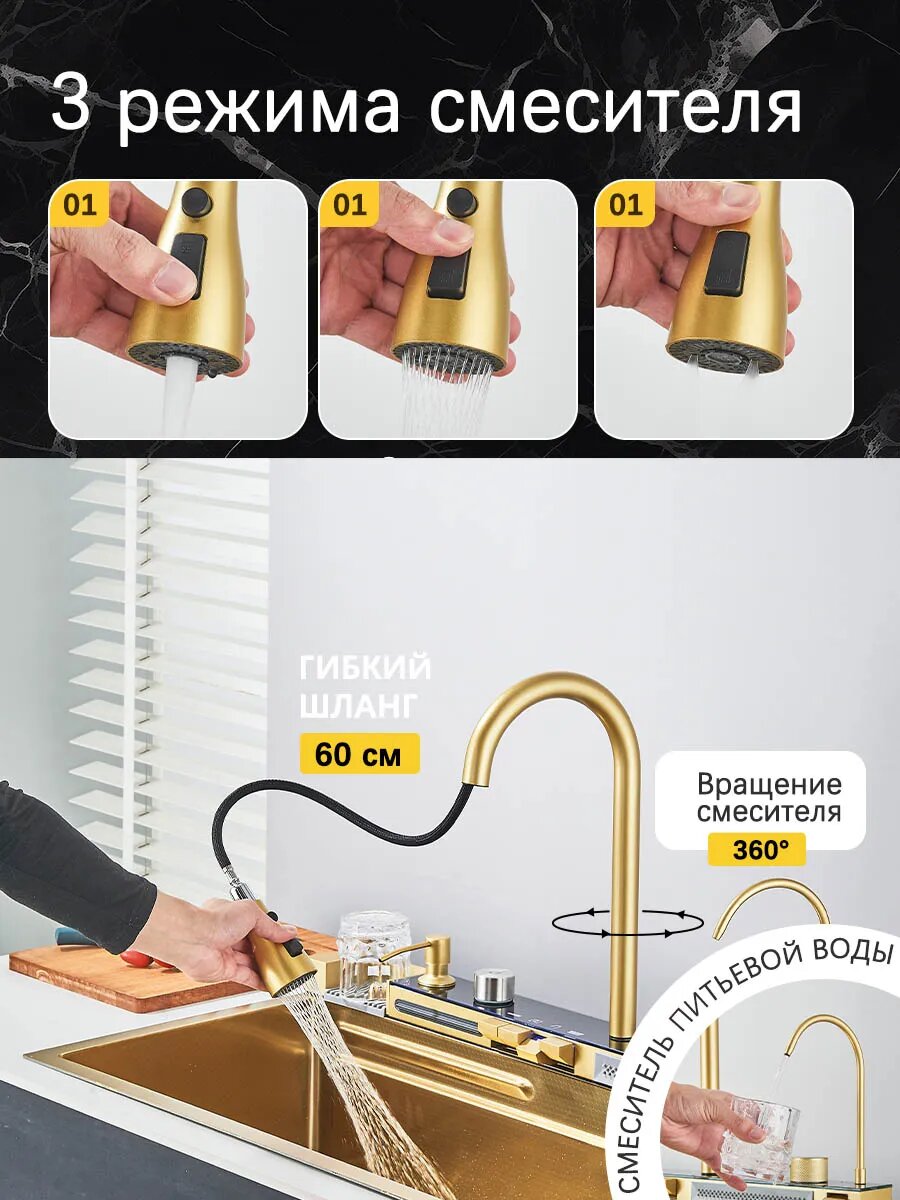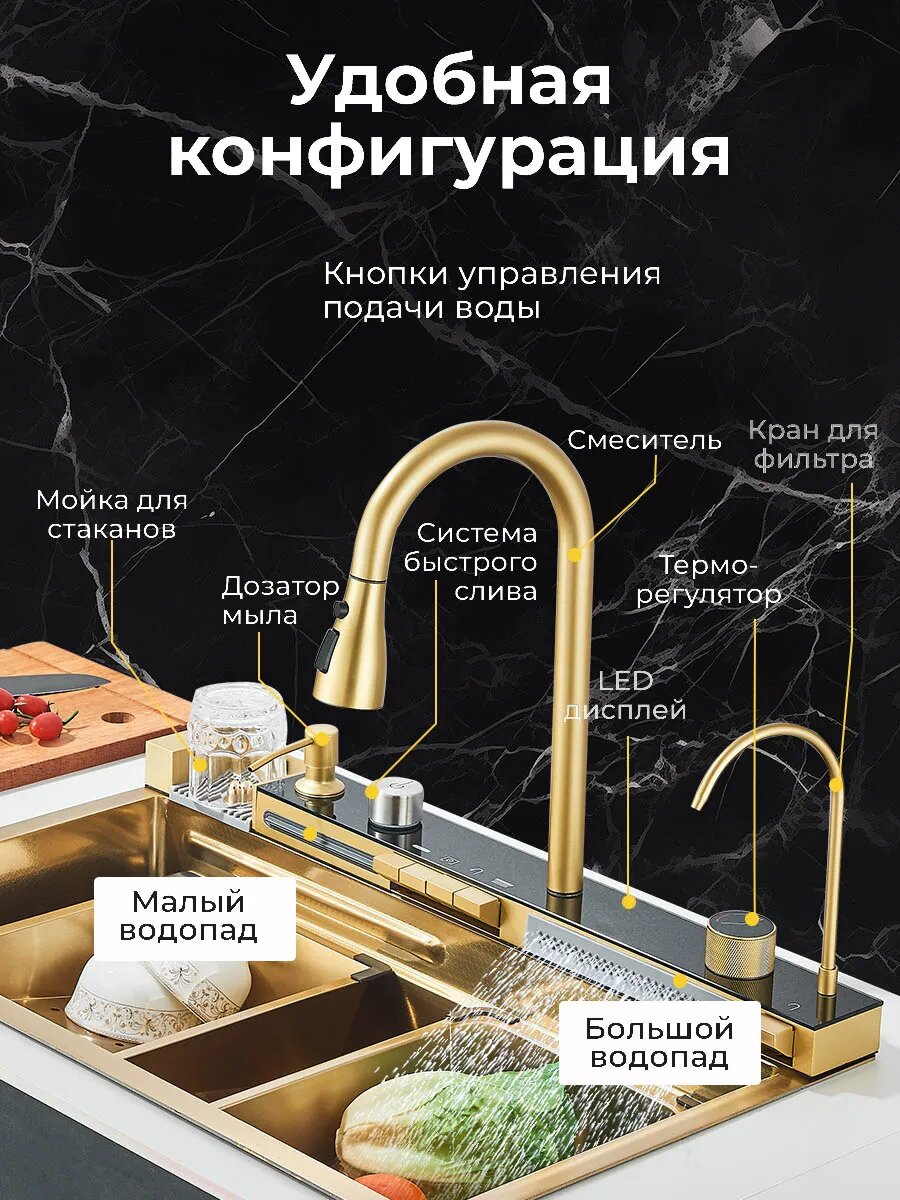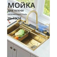 Мойка кухонная ououfaucet, нержавеющая сталь, Матовое золото, 75 см x 46 см: сравнение цен, характеристики, фото, актуальное наличие и цены.
