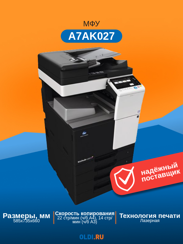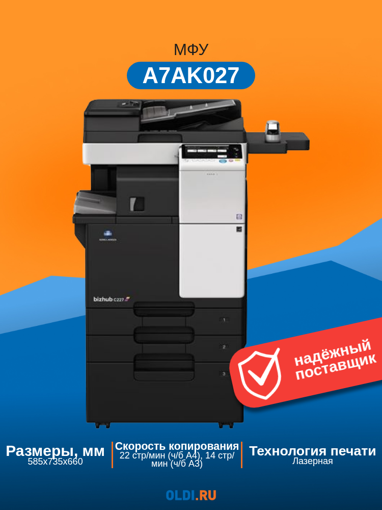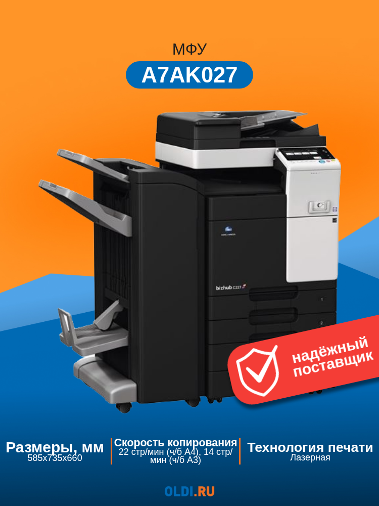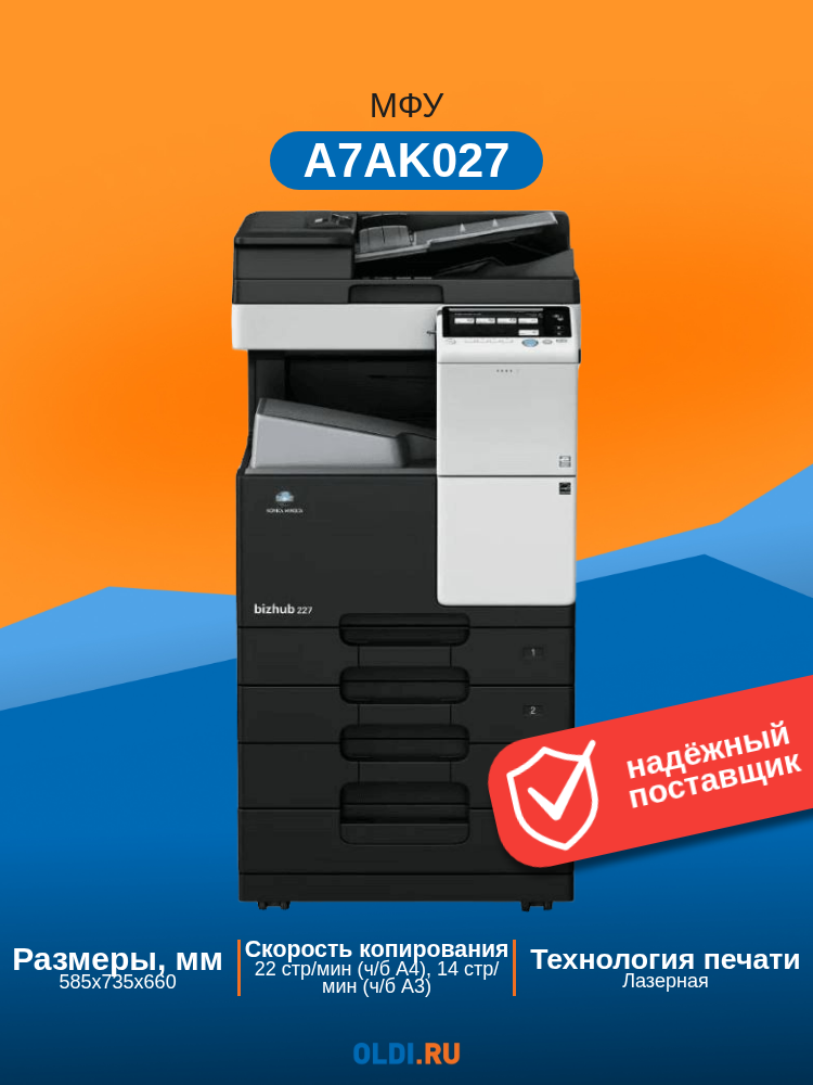 Многофункциональное устройство Konica Minolta bizhub 227 (А3, ч/б, 22 ppm, 2GB, HDD 250GB, Duplex, USB 2.0, Gigabit Ethernet, лотки 2х500л, без крышки: сравнение цен, характеристики, фото, актуальное наличие и цены.