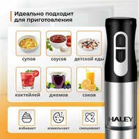 Купить Многофункциональный блендер погружной HALEY-1109 с регулятором мощности, турборежим 2 скоростями, 1200 Вт, черный, серый металлик с доставкой по всей России.