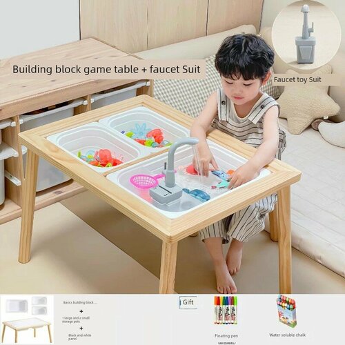 * **Springbuds Solid Wood Multifunctional Kids Building Block Table - Basics + faucet play water Suit (self-equipped battery) (Базовый + набор для игры с водой из-под крана (батарея в комплект не входит))**: Базовый стол с набором для игры с водой из-под крана (требуется самостоятельная установка батареи).