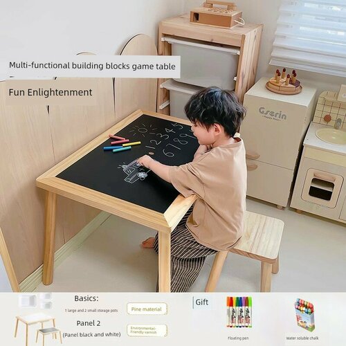 * **Springbuds Solid Wood Multifunctional Kids Building Block Table - Basics table + black and white panel 2 + storage box 3 (Базовый стол + черно-белая панель 2 + ящик для хранения 3)**: Базовый стол с двумя черно-белыми панелями и тремя ящиками для хранения.