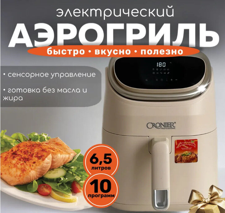 Многофункциональный электрический аэрогриль Cronier CR-8310, мощность 1600Вт, 6,5л, с сенсорным управлением: сравнение цен, характеристики, фото, актуальное наличие и цены.
