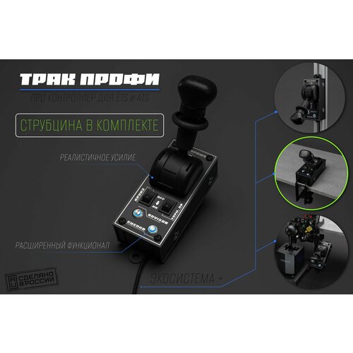 Ручной тормоз из линейки «Трак профи» разработан для настоящих ценителей Euro Truck Simulator и American Truck Simulator. Являясь контроллером узкого назначения, он по настоящему отражает вовлеченность владельца данного устройства, в мир ATS и ETS2. Разработанный и произведенный в России, многофункциональный ручной тормоз «Трак профи», закрывает вопрос не только реалистичного парковочного тормоза для виртуального грузовика, но и обеспечивает дополнительный контроль во время виртуальных путешествий. Кран стояночного тормоза позволяет в полной мере ощутить реалистичность от механики процесса, так как не является копией или аналогом грузового ручного тормоза. Кран установленный на борту «Трак профи» буквально может быть применен в настоящем грузовом автомобиле с двух или трехконтурной системой. Корпус устройства выполнен на высокоточных станках из холоднокатаной стали, после чего вручную обработан и окрашен устойчивым порошковым покрытием. Электроника на борту изделия позволяет подключатся к ПК без драйверов. Обширные возможности крепежа позволяют установить устройство практически при любых сценариях использования. Поставляемые в комплекте метизы, помогут в течении пары минут закрепить устройство на кокпитах из алюминиевого профиля и на местах со сквозным креплением. При использовании струбцины ручного тормоза, которую можно приобрести дополнительно, устройство может быть установлено практически на любом компьютерном столе. Одним из самых опциональных вариантов, является использование настольного кронштейна «Крокодил», так же доступного в нашем магазине. Он позволяет закрепить устройство, с плавной регулировкой угла наклона, разместив устройство рядом с панелью управления и коробкой переключения передач. Для реализации полного функционала устройства, потребуется настройка через доп. софт. Инструкция в комплекте.