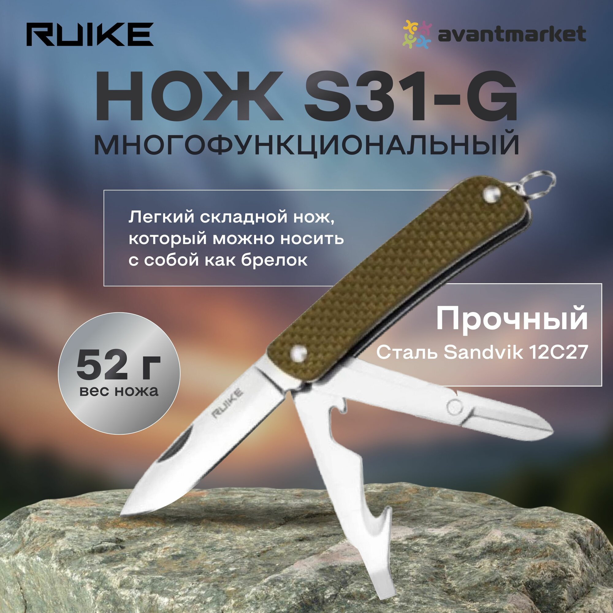 Многофункциональный складной нож Ruike S31-G, туристический, EDC, нержавеющая сталь, зеленый: сравнение цен, характеристики, фото, актуальное наличие и цены.
