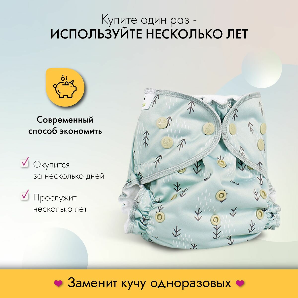Многоразовый подгузник выручит вас во время прогулки и дневных игр. Даже если ребенок пописает, он будет сухим и комфортным для детской кожи в течение 2–3 часов. Снаружи у подгузника красочный непромокаемый дышащий слой, который не протечет. Внутри — нежный микрофлис. Он пропускает жидкость к вкладышам, которые находятся в кармашке, а сам остается сухим. В комплекте идут два впитывающих вкладыша из микрофибры. Если их вынуть, изделие можно применять для плавания.
