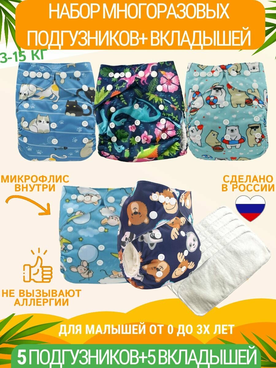 Многоразовые подгузники 5шт+5вкладыша, для приучения к горшку, для новорожденных, для плавания детские: сравнение цен, характеристики, фото, актуальное наличие и цены.