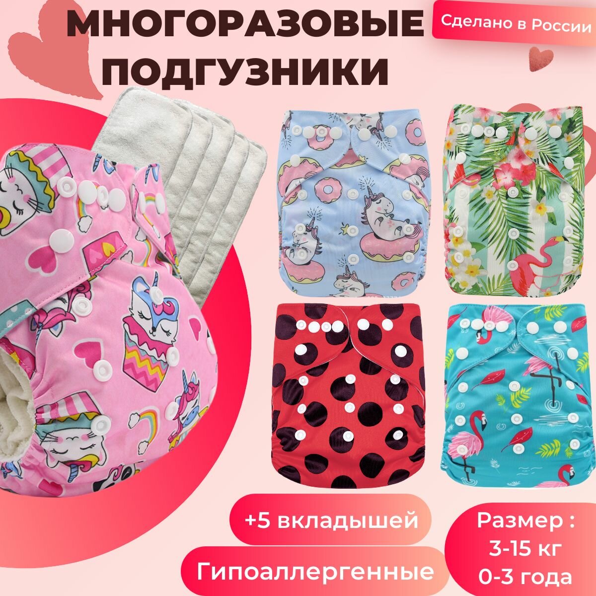 Купить Многоразовые подгузники для детей 3-15 кг /для новорожденных + 5 вкладышей в комплекте с доставкой по всей России.