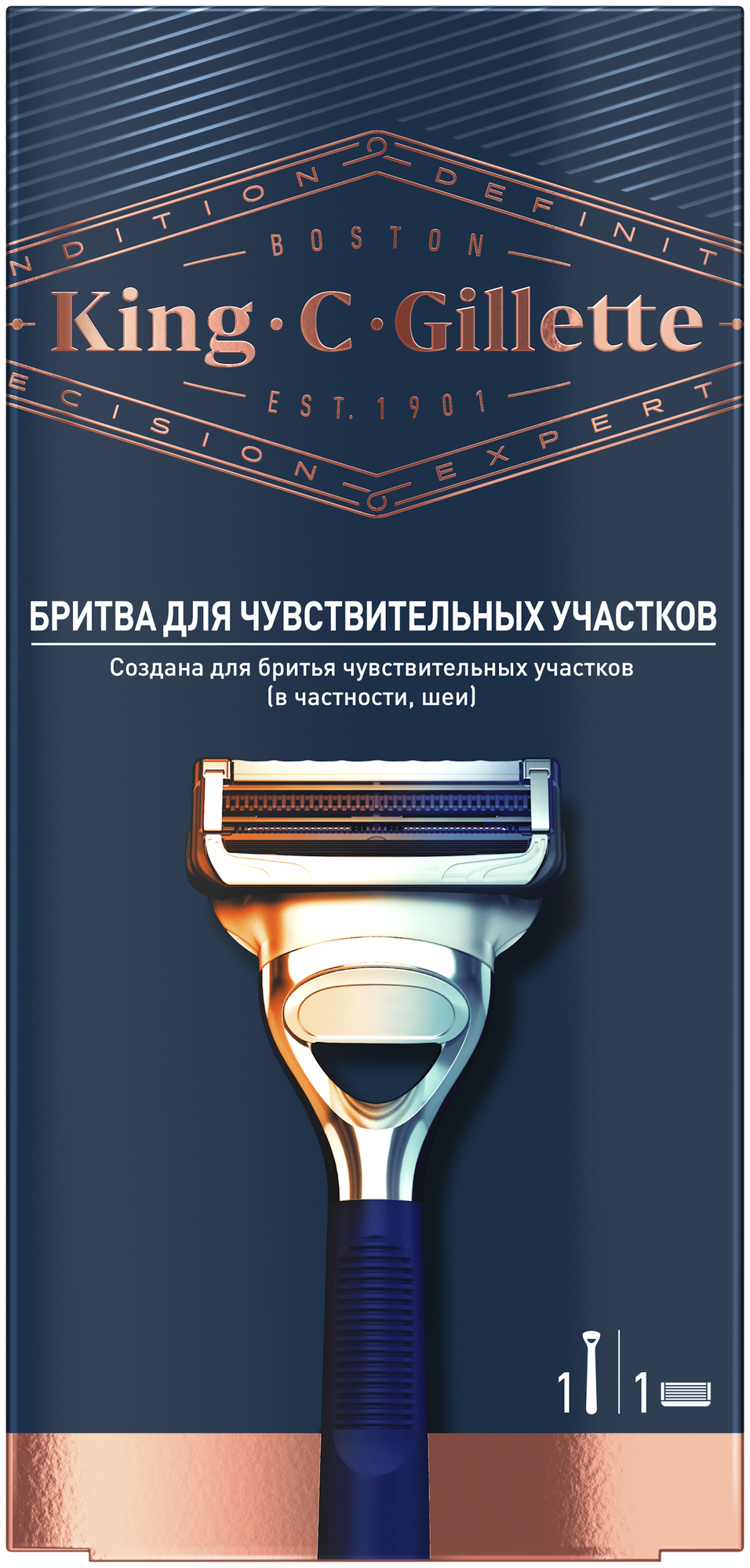 Линейка King C. Gillette объединила в себе всю экспертизу и инновации, накопленные за столетие, и названа в честь основателя нашей компании: Кинга К. Жиллетта. Бритва King C. Gillette для чувствительных участков создана для бритья чувствительных участков шеи и щек, чтобы вы могли легко добиться идеального образа. Точный триммер на задней поверхности кассеты предназначен для самых труднодоступных мест и для ухода за бородой и усами. Для бритвы подойдут сменные кассеты для бритвы для чувствительных участков King C. Gillette. Преимущества: • Бритва King C. Gillette разработана специально для бритья чувствительных участков щек и шеи; • Кассеты для бритья чувствительных участков King C. Gillette обладают низкой силой срезания; • 2 оптимально расположенных лезвия на кассете помогают предотвратить раздражение и минимизировать подергивания; • Смазывающая полоска до и после лезвий увлажняет и облегчает скольжение бритвы по коже; • Cпециальный протектор между лезвиями разглаживают чувствительную кожу для минимизации раздражения; • Точно обеспечивает легкий переход от бритья к контурингу; • Инновационный и уникальный дизайн. Создай свой уникальный образ с помощью бритвы King C. Gillette для чувствительных участков!