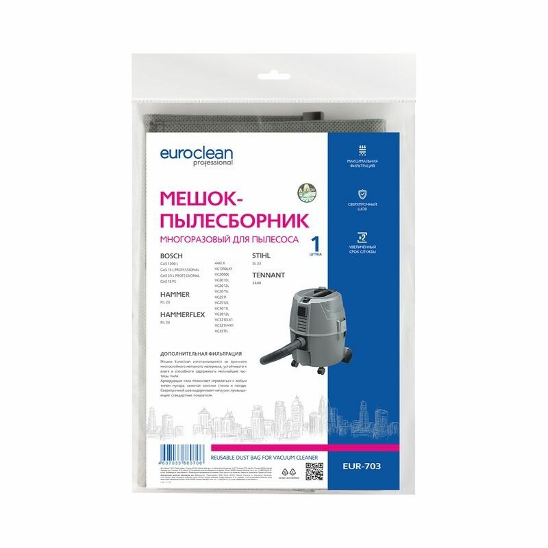 Многоразовый мешок с пластиковым зажимом для пылесоса MKT VC2511, BOSCH GAS 15, арт. EUR-703: сравнение цен, характеристики, фото, актуальное наличие и цены.