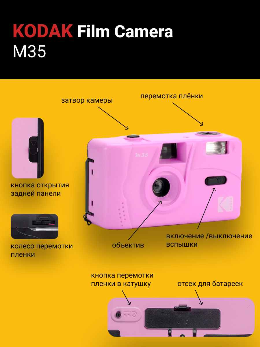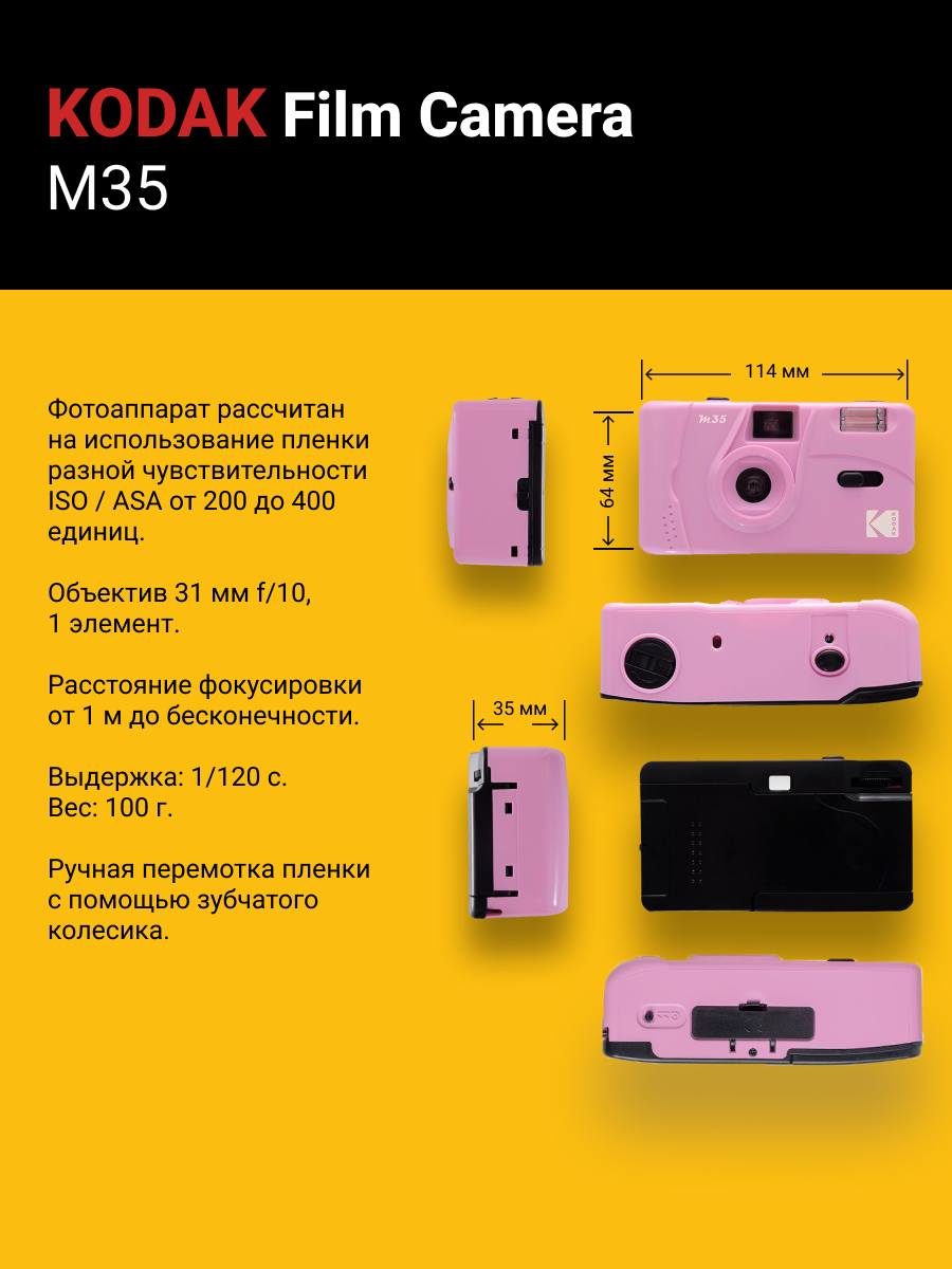 Многоразовый пленочный фотоаппарат Kodak M35 35 мм (тип 135) фиолетовый: сравнение цен, характеристики, фото, актуальное наличие и цены.
