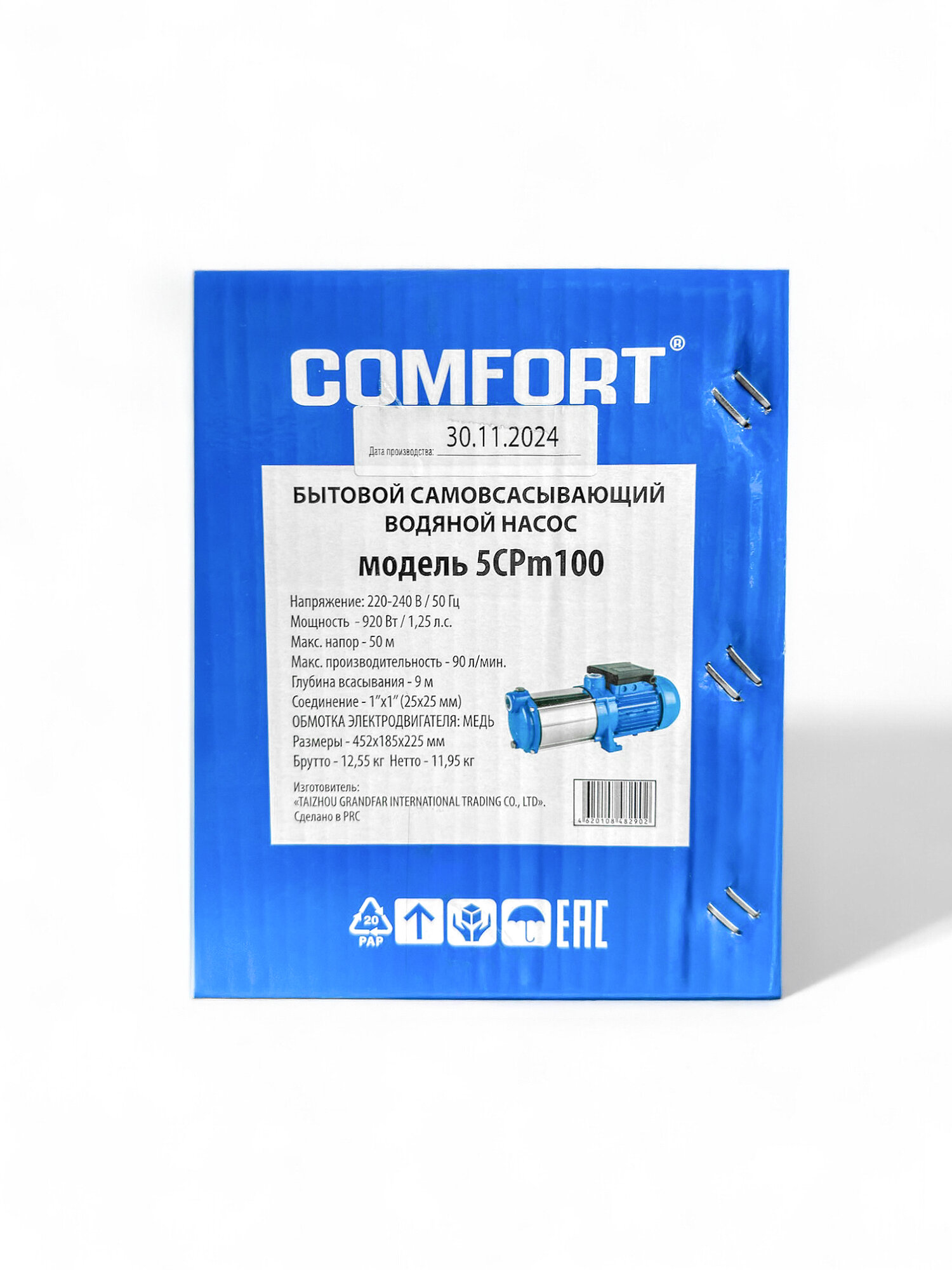 Многоступенчатый насос COMFORT CPm100 предназначен для: перекачки чистой воды, поднятия давления в муниципальных водопроводах, автоматизированного водоснабжения жилых помещений. Особенности: Служит для перекачивания чистой воды (без абразивных примесей)- Идеально подходит для индивидуальных систем водоснабжения- Простая эксплуатация, удобный монтаж и компактные размеры- Корпус насосной части изготовлен из нержавеющей стали- Высокая надежность и антикоррозионная защита- Диффузор, рабочее колесо и эжектор из термостойкого пластика- Способен всасывать воду на глубине до 8 м- Рабочее давление при максимальной нагрузке: до 3,5 бар- Допустимая температура жидкости: от 0 °C до 90 °C