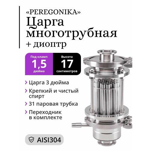 Многотрубная царга (МЦ) 3 дюйма под кламп 1,5 дюйма «PEREGONIKA», 17 см в диоптре с переходником 3 дюйма → 1,5 дюйма