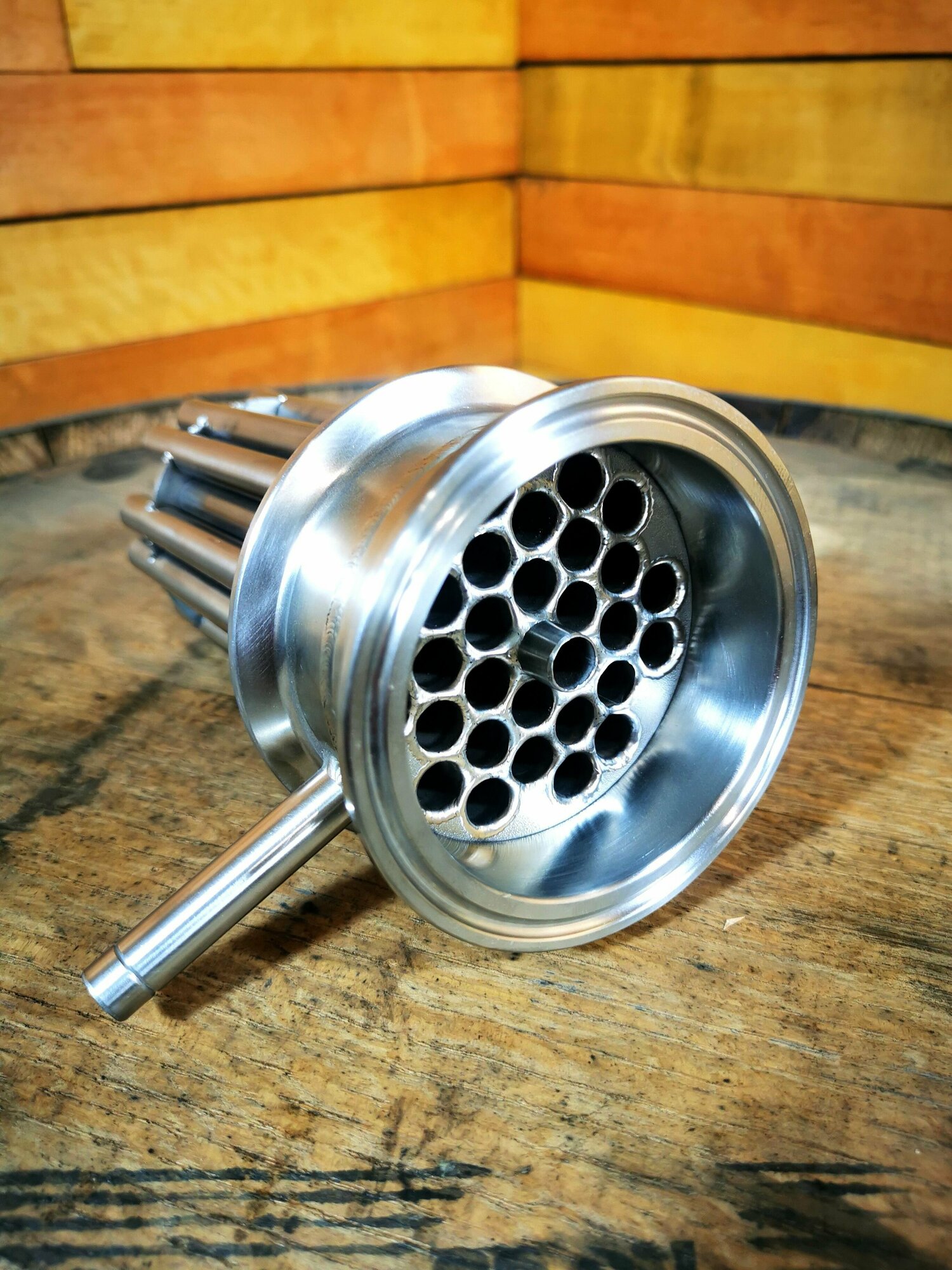 В производстве нашей МЦ используются паровые трубки с толщиной стенки 0.5мм, что наилучшим образом сказывается на процессе тепломассообмена. Диаметр паровых трубок 10мм. Количество паровых трубок 30шт и 1шт переливная. Подключение кламп 3 дюйма. Подходит под стандартный диоптр 150-160мм.