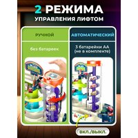 | особенности | машинки в комплекте, питание от батареек, с лифтом |