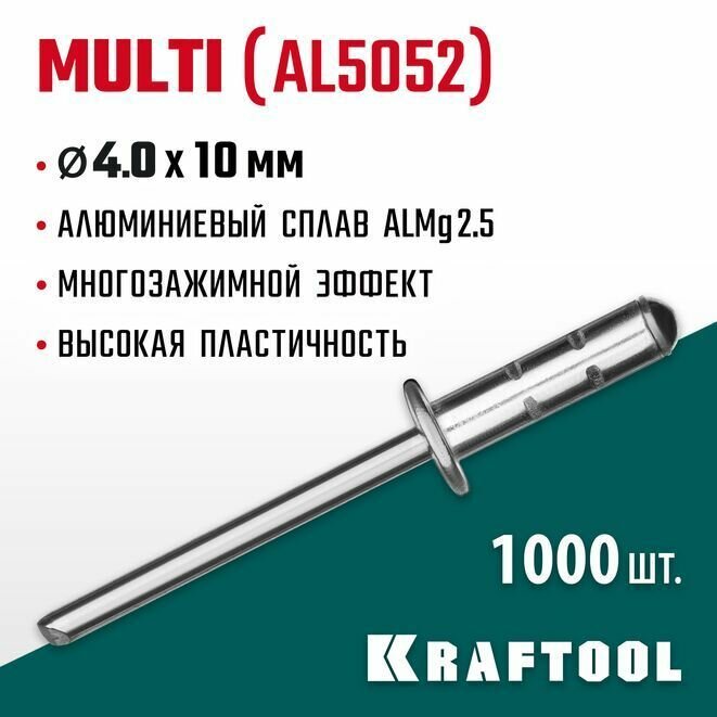 Заклепки алюминиевые многозажимные Multi (Al5052) , 4.0 х 10 мм, 1000 шт, KRAFTOOL: сравнение цен, характеристики, фото, актуальное наличие и цены.
