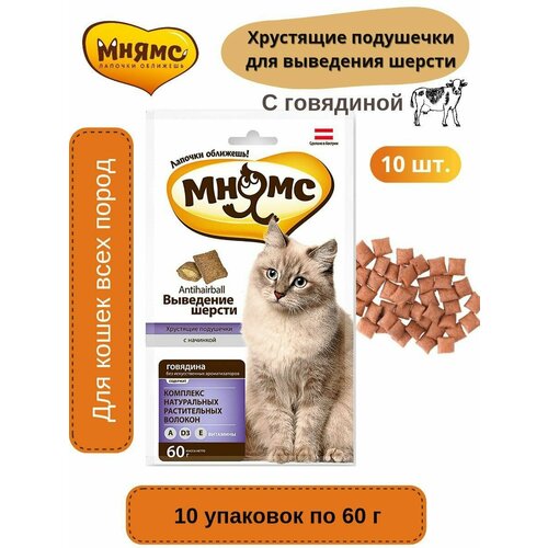 Купить Мнямс хрустящие подушечки для кошек с говядиной «Выведение шерсти» 10 уп.*60 г с доставкой по всей России. Мнямс хрустящие подушечки для кошек с говядиной «Выведение шерсти» 10 уп.*60 г: сравнение цен, характеристики, фото, актуальное наличие и цены.