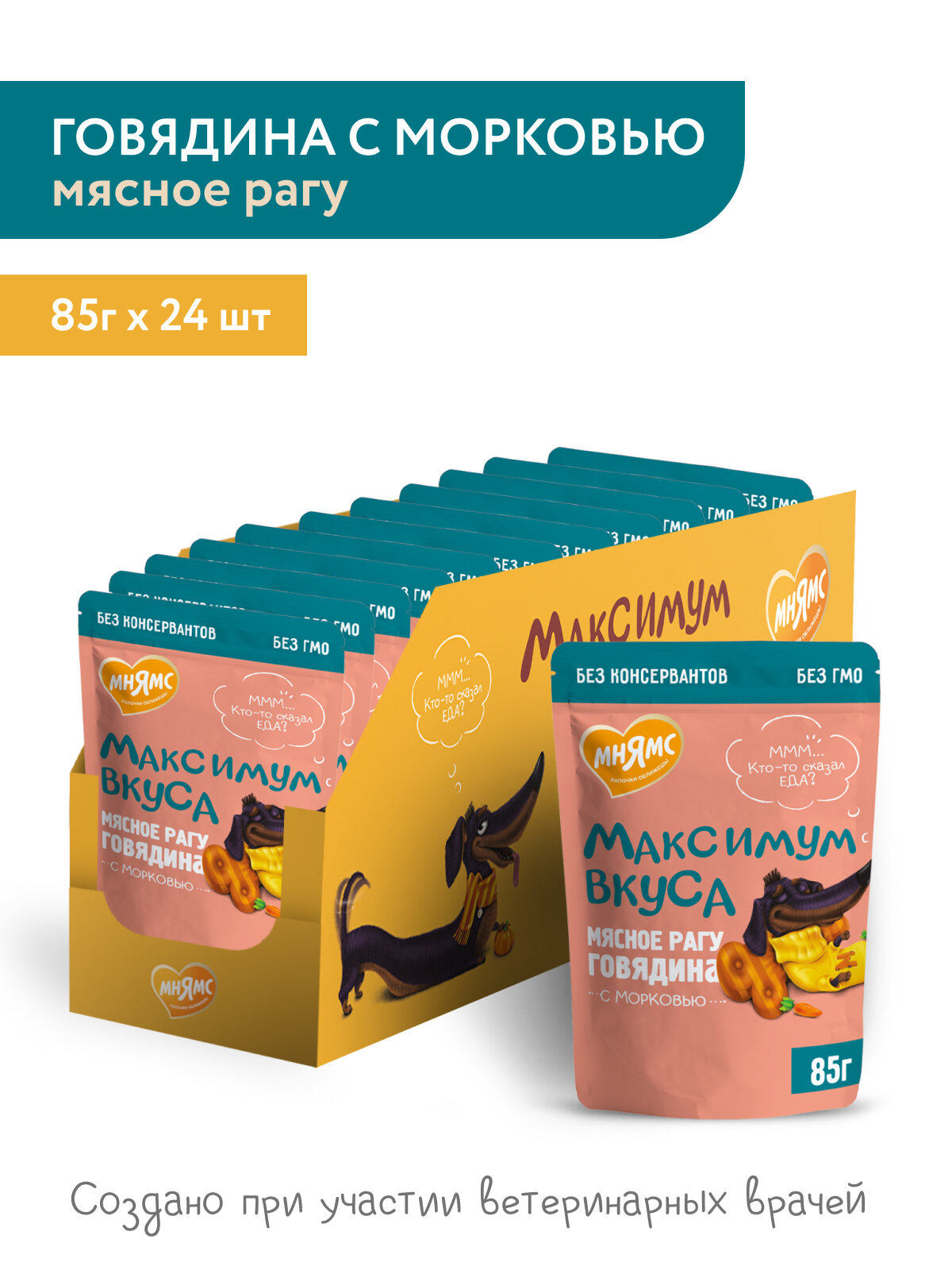 Мнямс «Максимум вкуса» пауч для собак мясное рагу говядина с морковью 85гр (Упаковка 24шт): сравнение цен, характеристики, фото, актуальное наличие и цены.