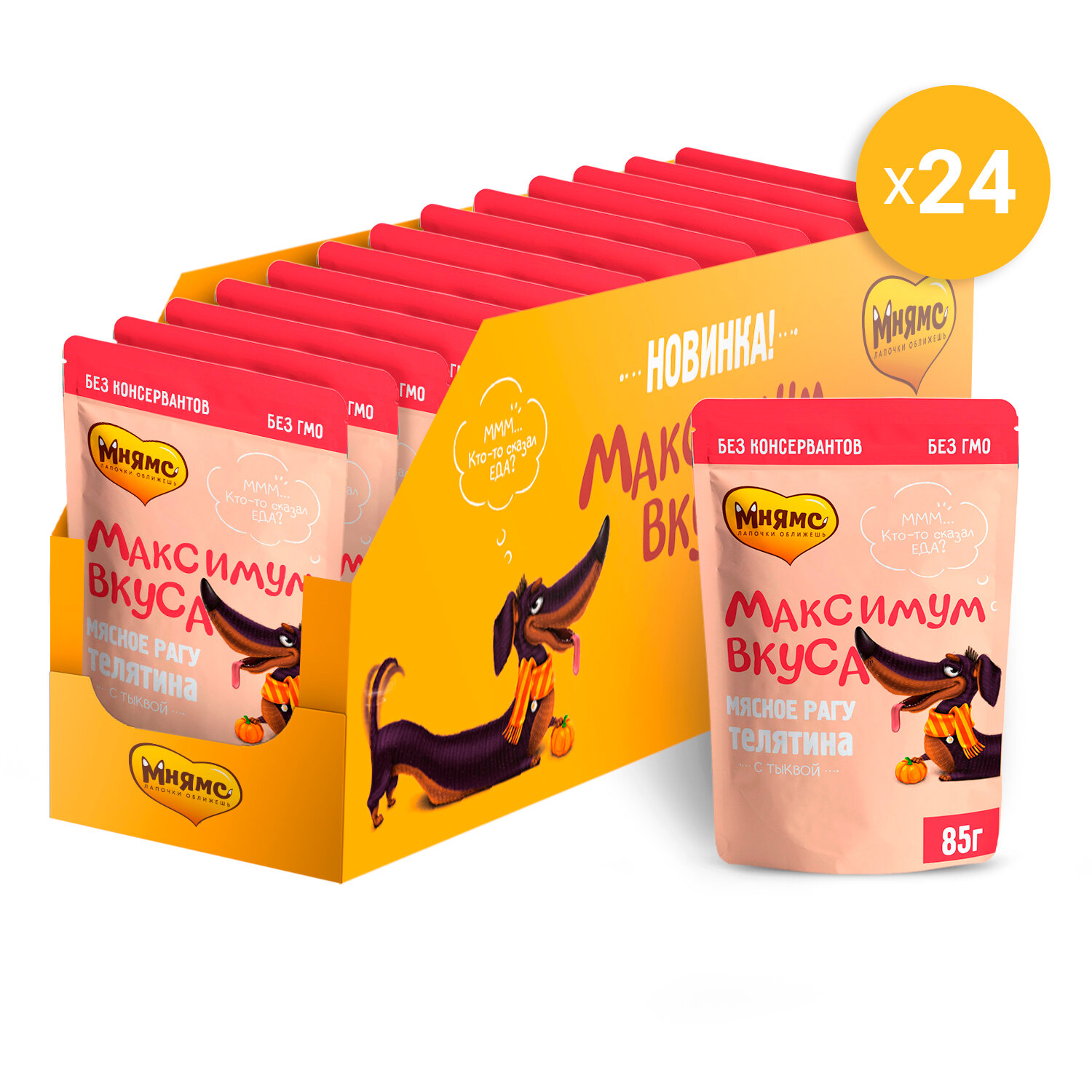 Купить Мнямс «Максимум вкуса» пауч для собак (рагу) Телятина и тыква, 85 г. упаковка 24 шт с доставкой по всей России.