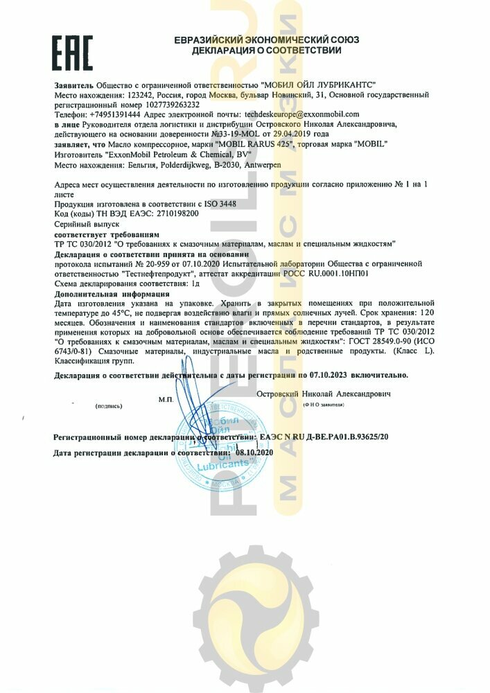Купить Mobil Rarus 425 (20 л) 152675/127691 Масло компрессорное с доставкой по всей России. Mobil Rarus 425 (20 л) 152675/127691 Масло компрессорное: сравнение цен, характеристики, фото, актуальное наличие и цены.